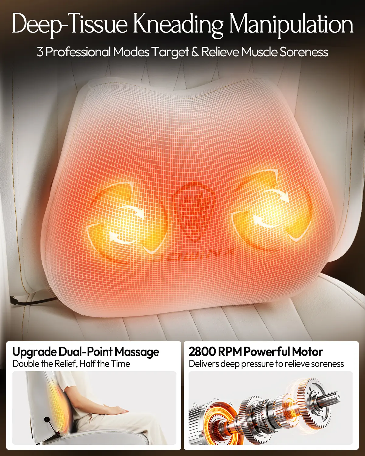 ·Conquer Back Pain for Long Sessionsââ: Go beyond basic lumbar support. Our unique dual-node massage lumbar pillow delivers deep-tissue pulses precisely to your lower back. With ââ3 intensity levelsââ, it actively fights fatigue, giving you the core support needed to dominate any marathon session