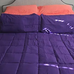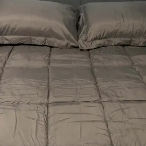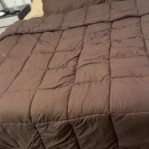 Probably the most comfy comforter I've ever bought. It's cooling but keeps you warm. I ordered the dark chocolate in kind size. It's oversized and so soft. Oh it's reversible (dark yellow) which makes it fun. I can switch up the colors of our room so much easier now.