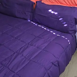 The Best buy EVER.. Omgosh good Quality, soft, full in size.. I got a KING size and I absolutely Love the Comforter and It comes with two Pillow Shams!!. And thus Purple Is Fire on my Grey Country Bedroom Suit