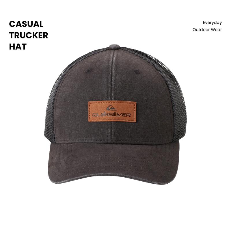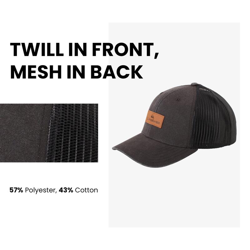 Quiksilver | Down The Hatch Trucker Hat | Black Twill Front Mesh Back | 6 Panel | Adjustable Snapback Closure | Classic Surf Style