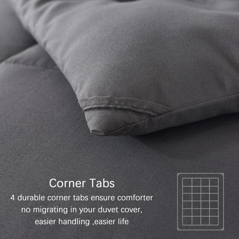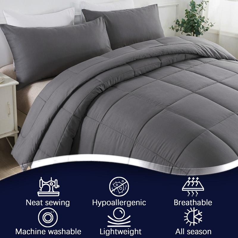 The comforter is soft, lightweight and fluffy. Turn down the thermostat. Perfect for chilly fall mornings. Money well spent...