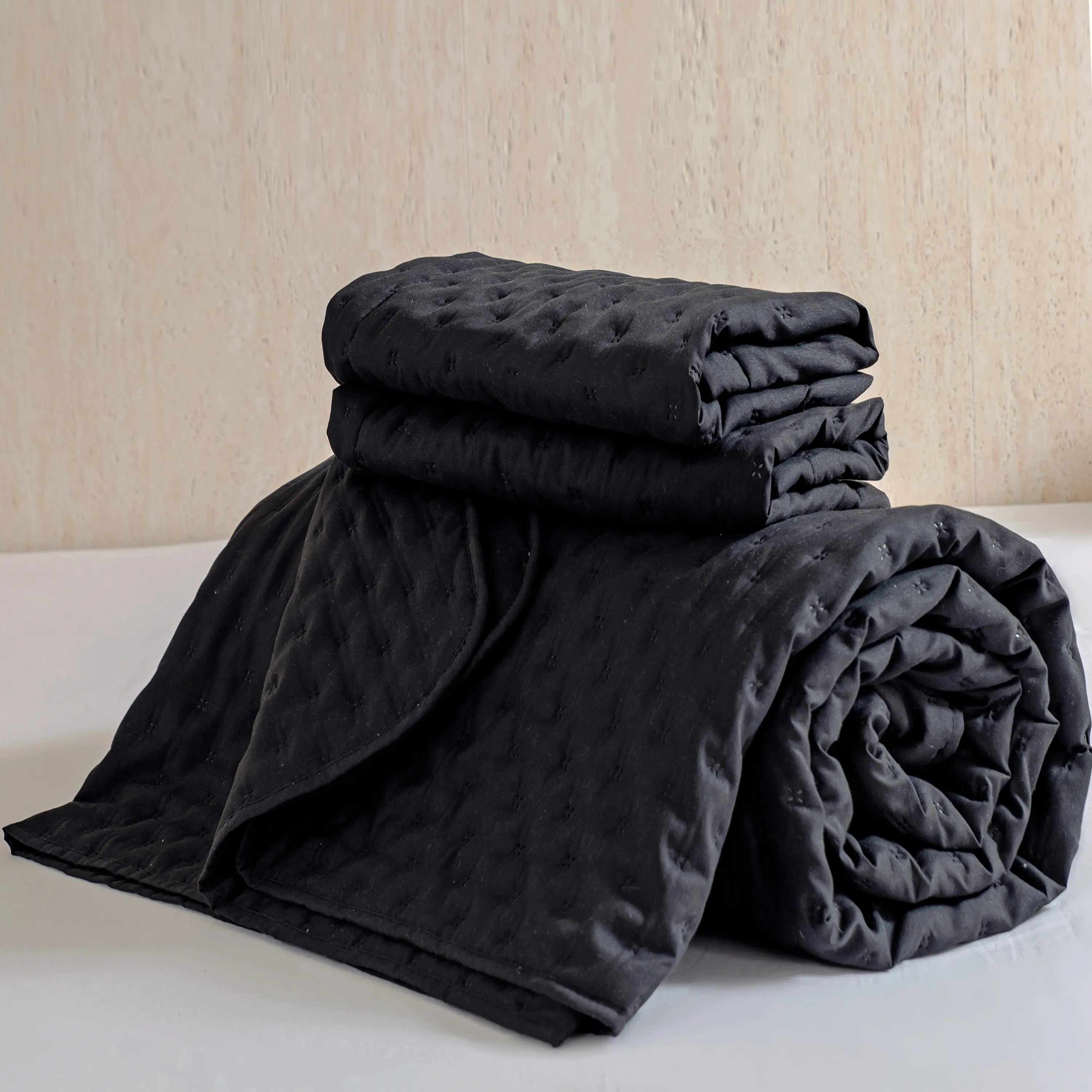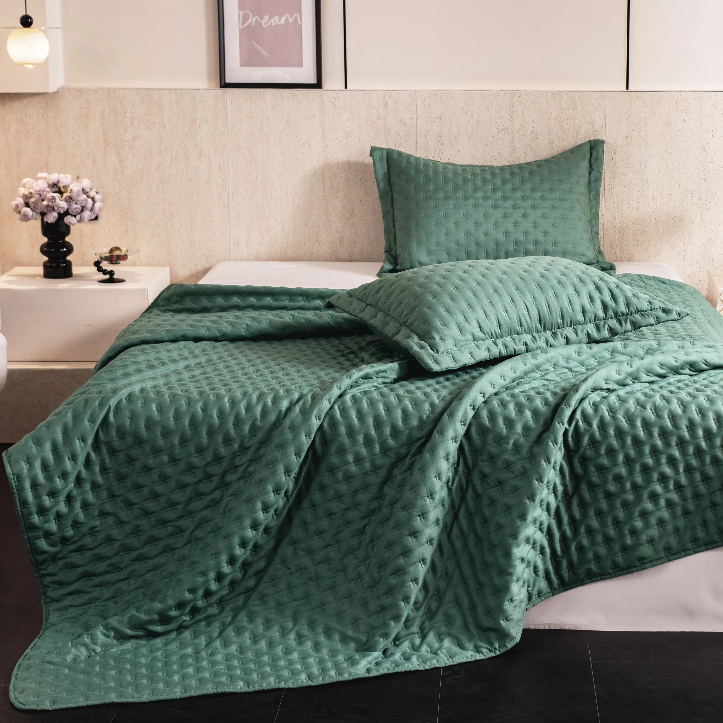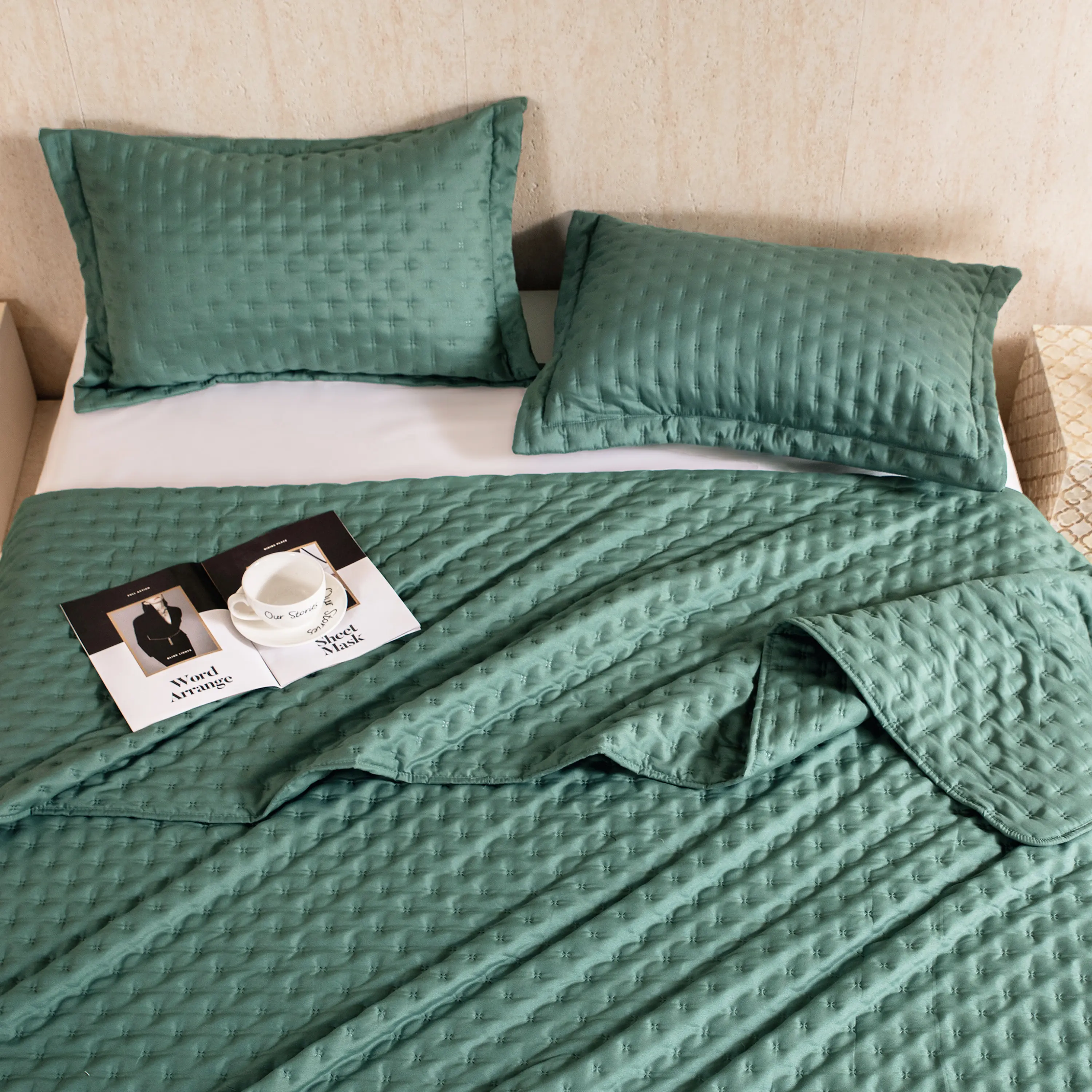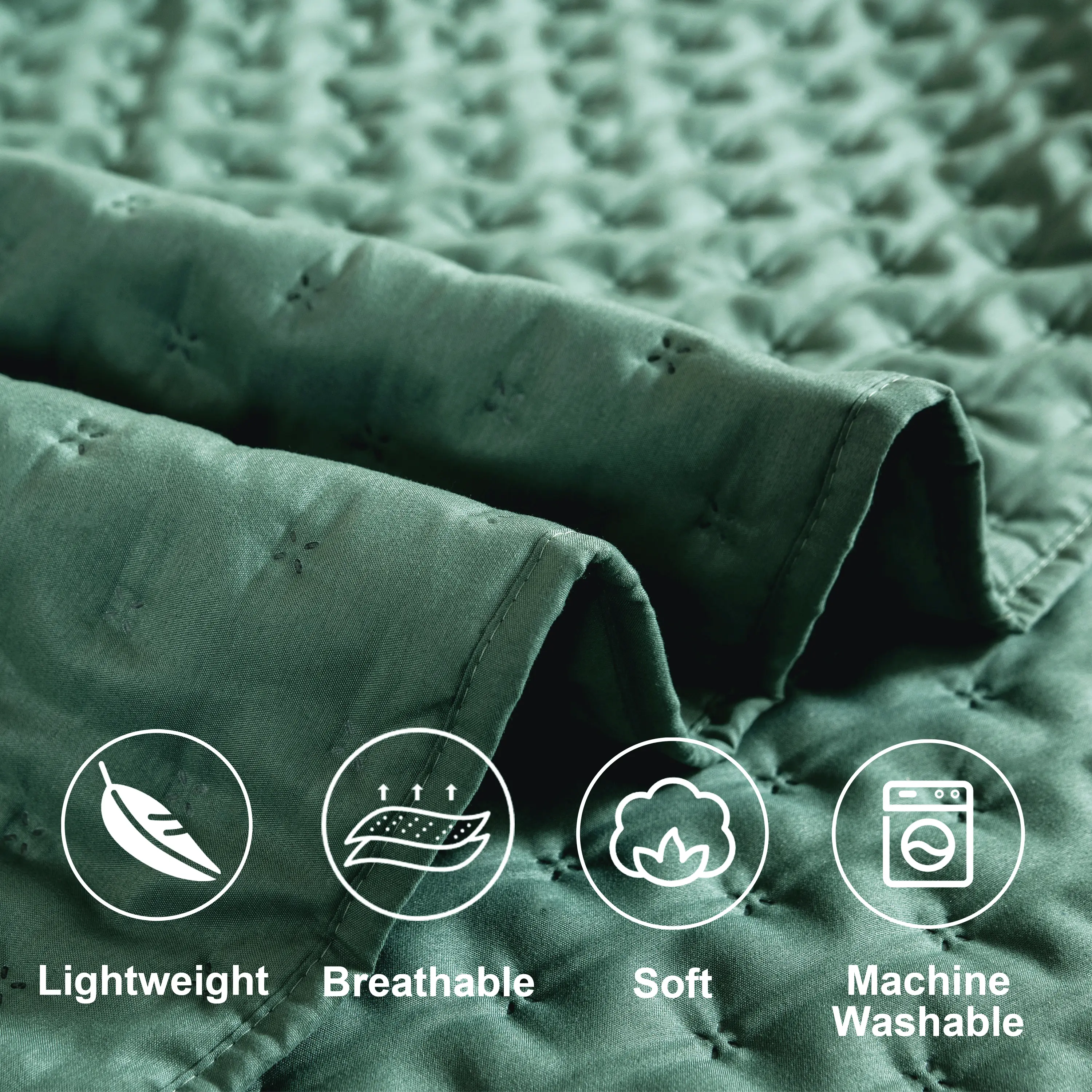 DOWNCOOL Quilted Blanket Set - 3-Piece Lightweight Soft Blanket & Pillow Shams for All-Season -Premium Microfiber