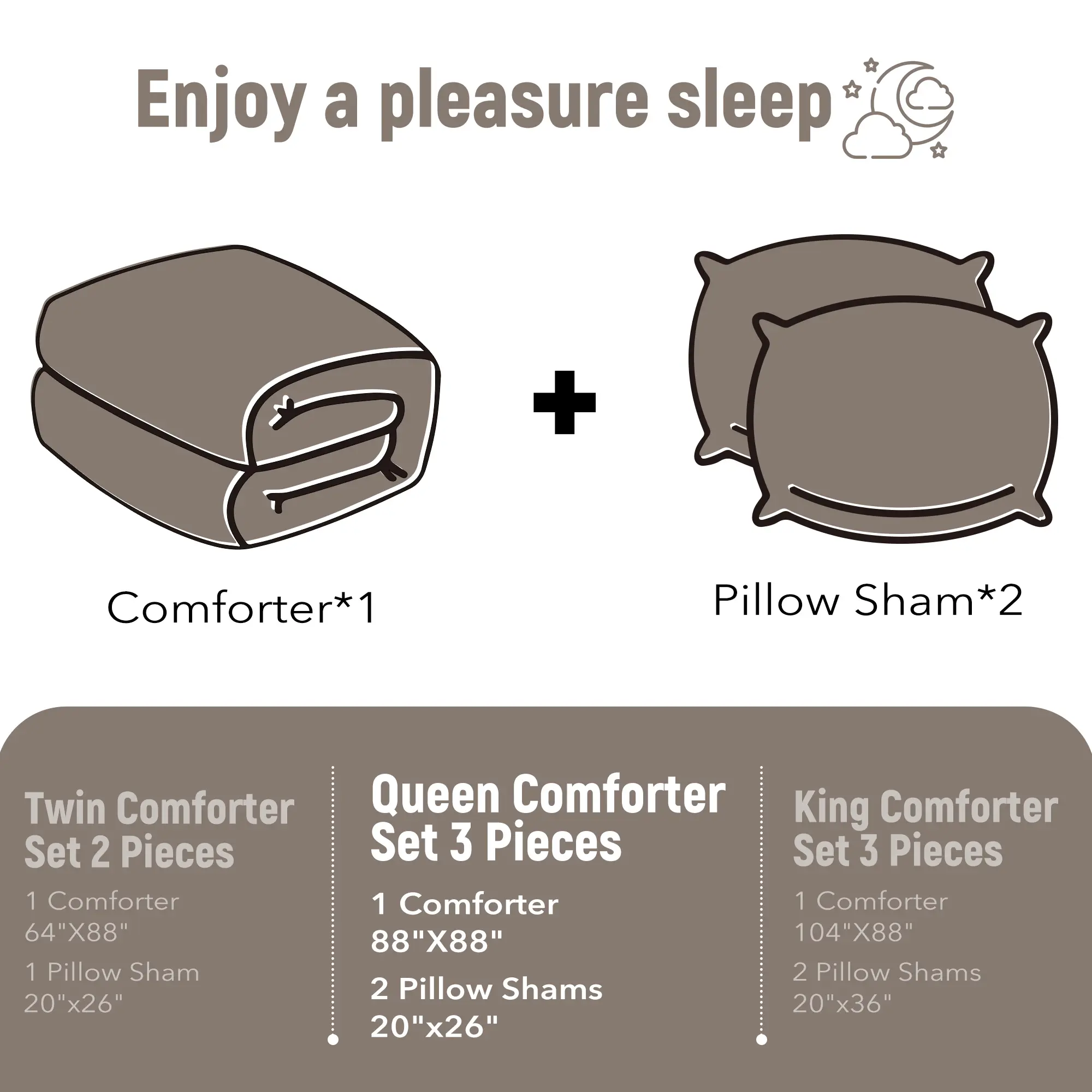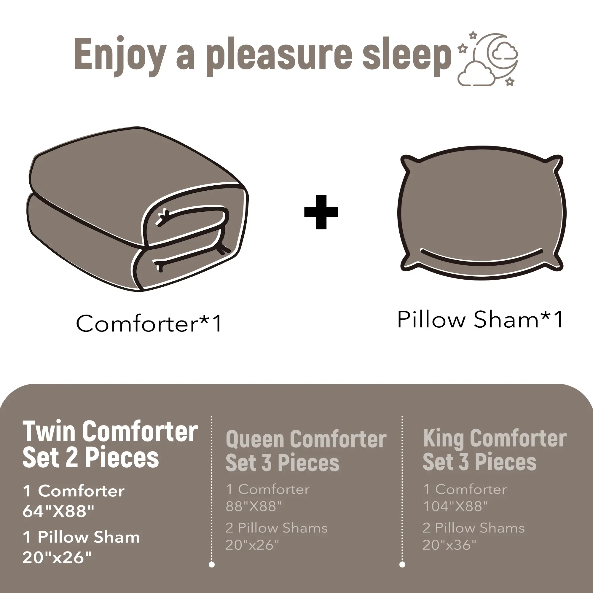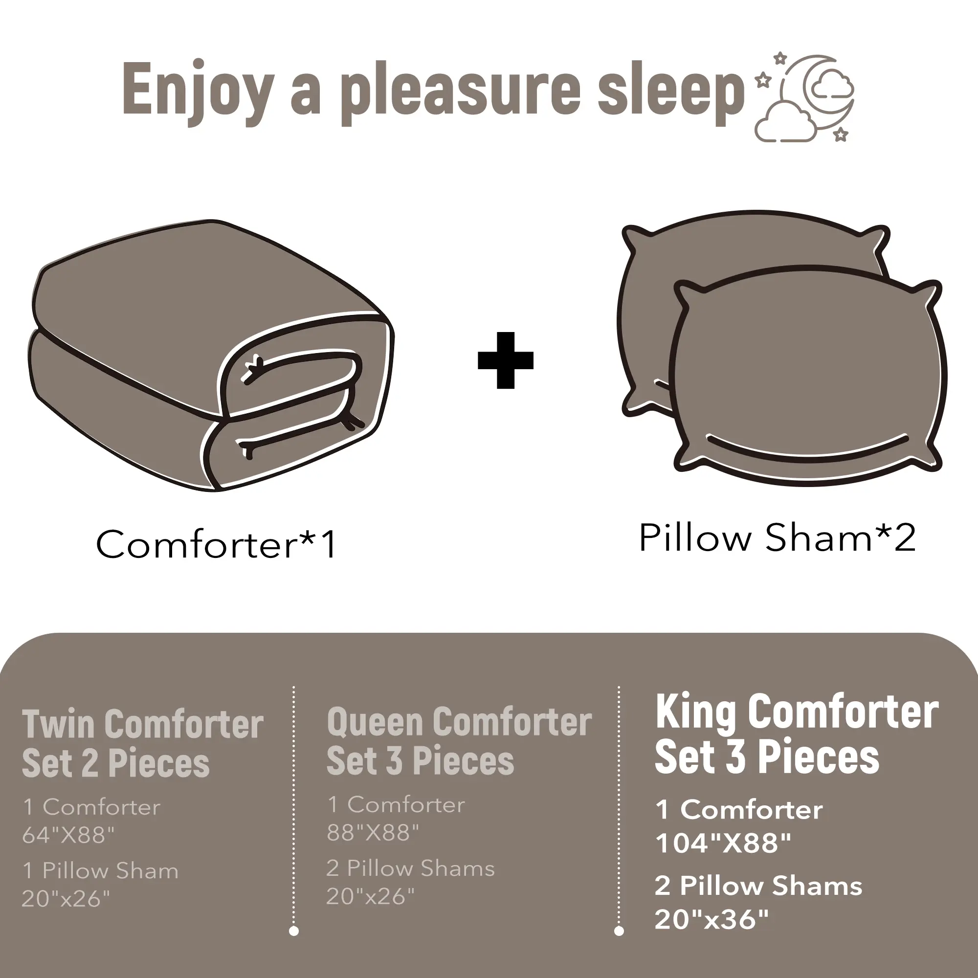 This king set: 1 Comforter (104" x 88"), 2 Pillow Shams (20" x 36" )
