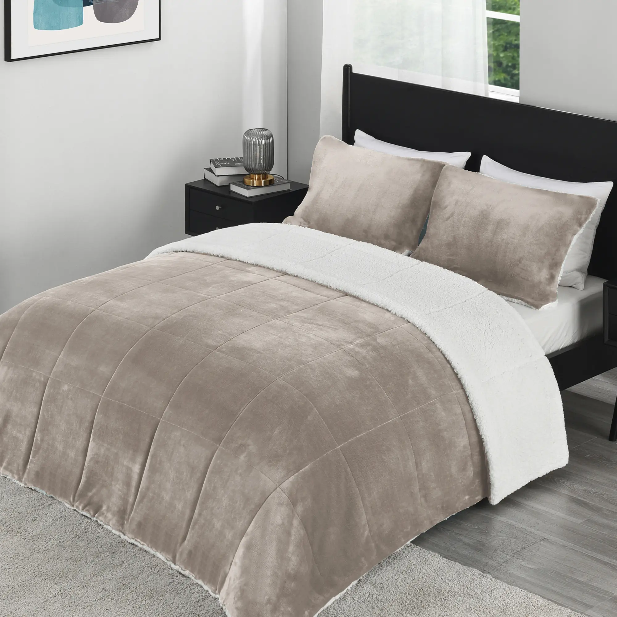 Machine Washable: Sherpa comforter set can be washed separately by machine in the gentle cycle with cold water, and it should be separated from other products. Don't forget to tumble dry or sun-dry on low heat.