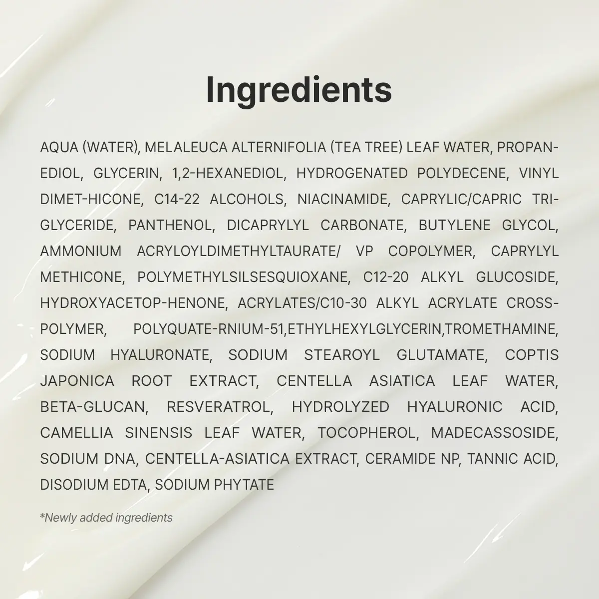 ·5 SOOTHING INGREDIENTS : Care for sensitive skin and red blemishes caused by external factors with Tea Tree Leaf Water, Madecassoside, and Centella Asiatica. These calming ingredients can quickly help soothe your skin effectively by providing moisture.