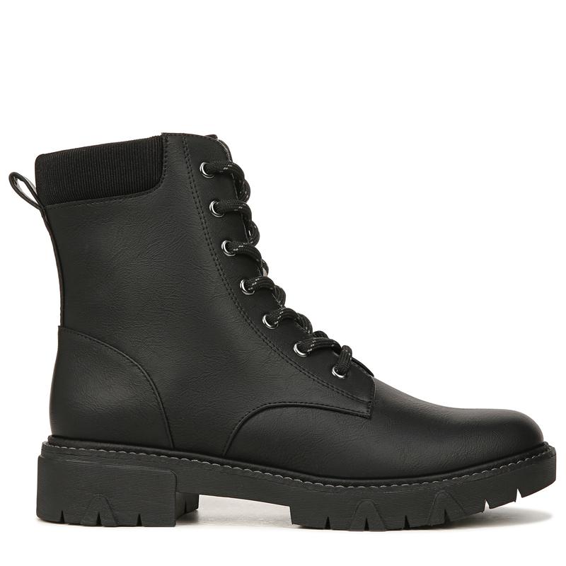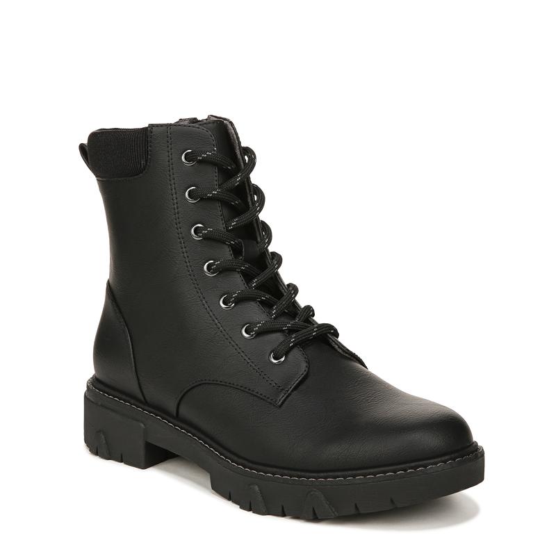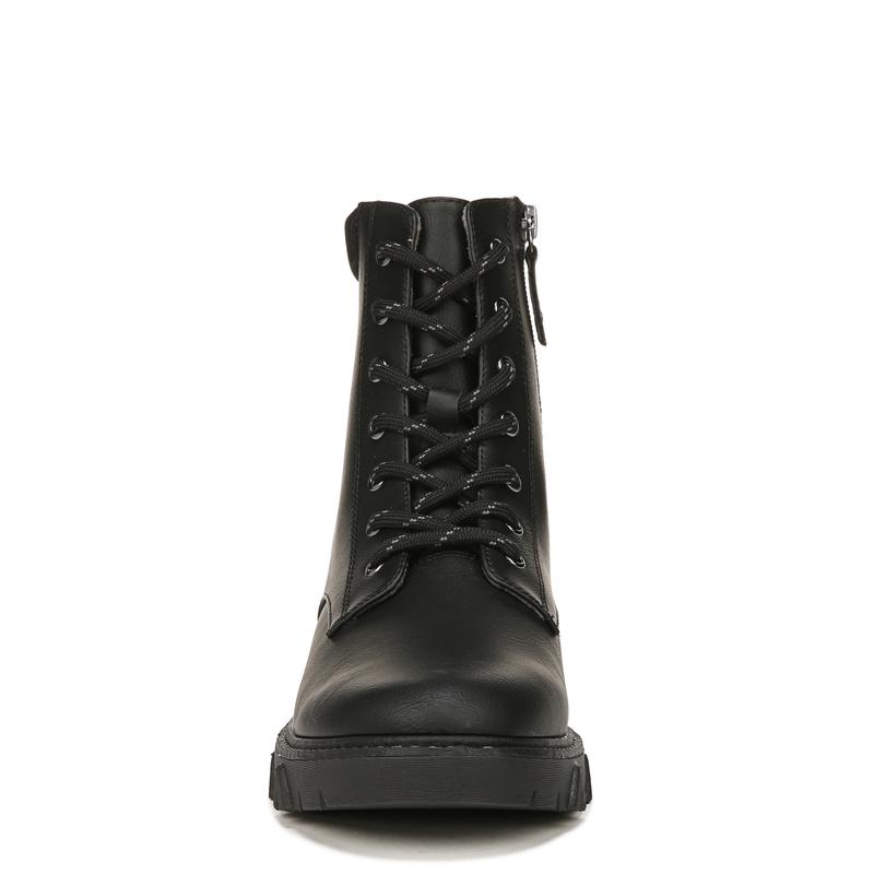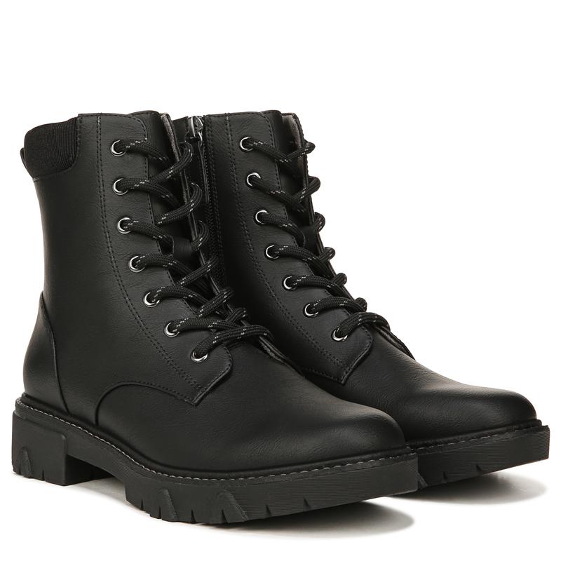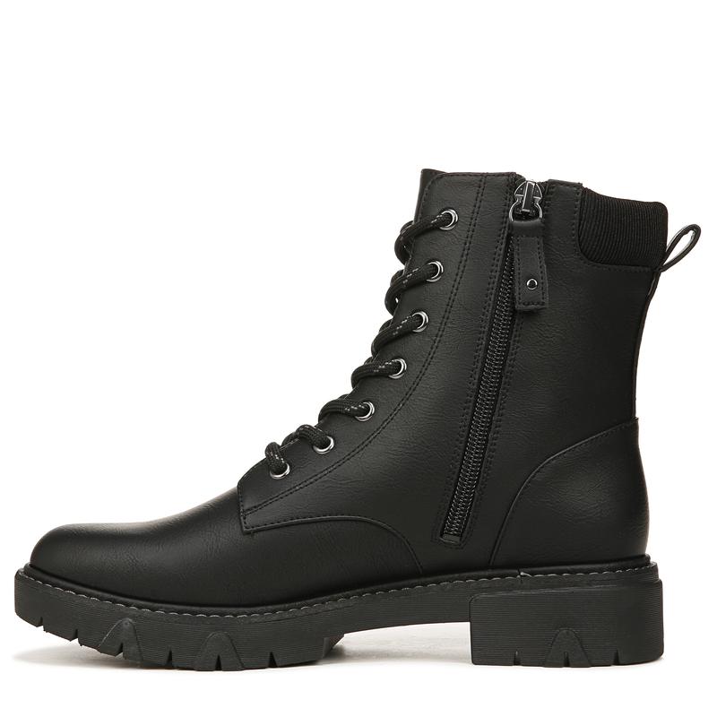 ¡STYLE: Lace-up combat boot with inside zip, padded collar, and 1 1/2 inch platform lug sole