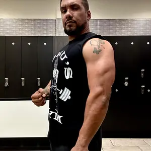 Shirt is actually super nice quality material is thick and heavy like you’d want in a gym tee. I wear it more than I should..: