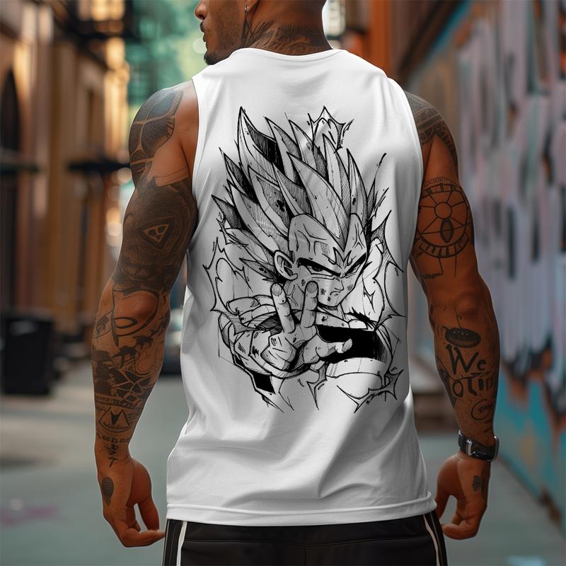 5. Dragon Ball DBZ Majin Vegeta Unisex Summer outfits men streetwear 80s 90s graphic tees cotton Anime tank tops men gifts