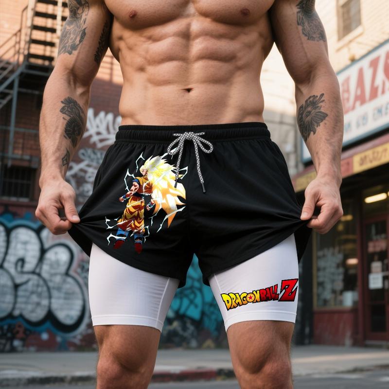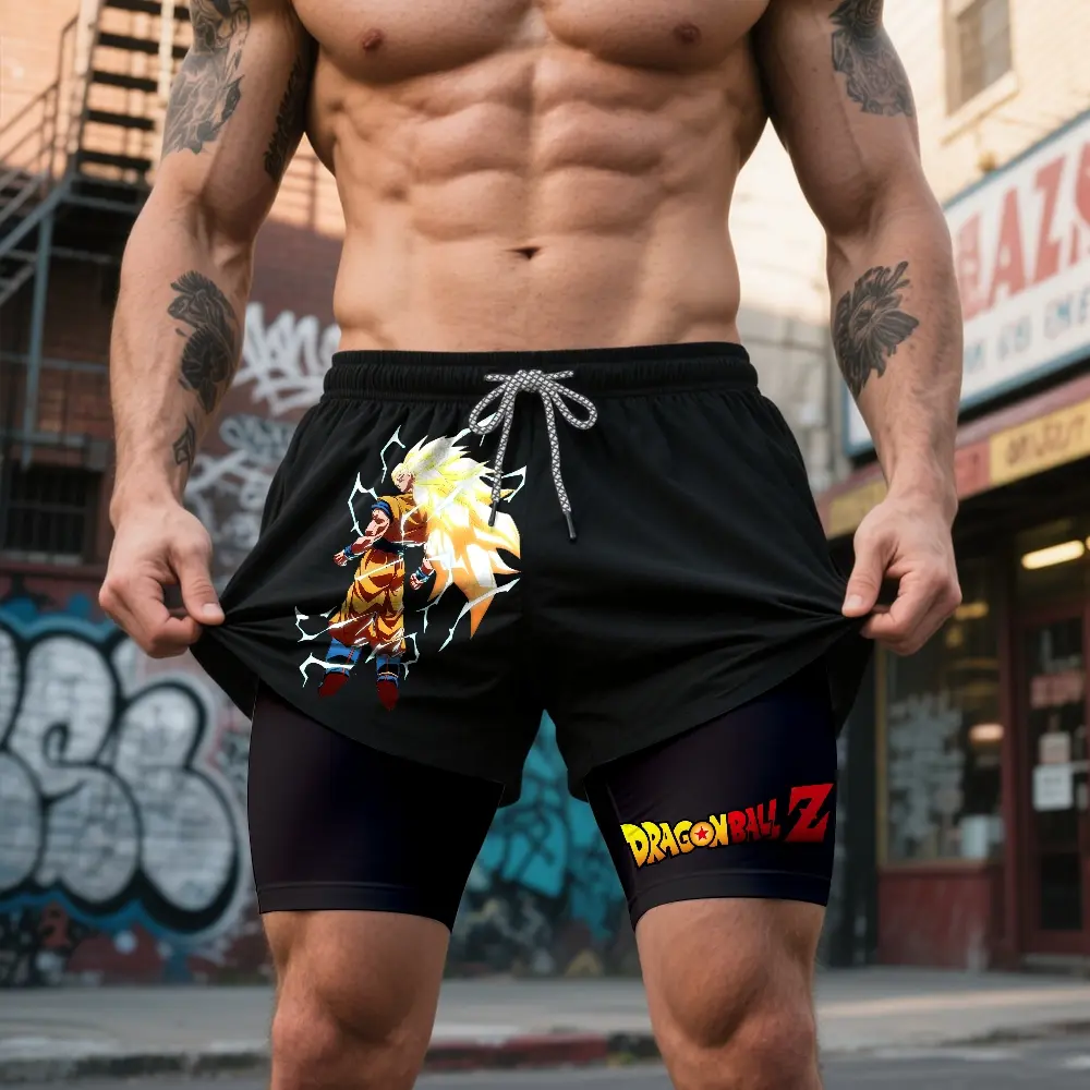 Dragon Ball DBZ Goku 80s 90s summer men shorts for men jorts outfit men graphic shorts Double-layer sports shorts Comfortable short shorts summer