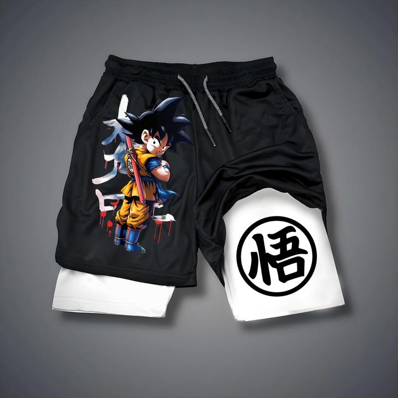 Dragon Ball DBZ Goku 80s 90s summer men shorts for men jorts outfit men graphic shorts Double-layer sports shorts Comfortable short shorts summer