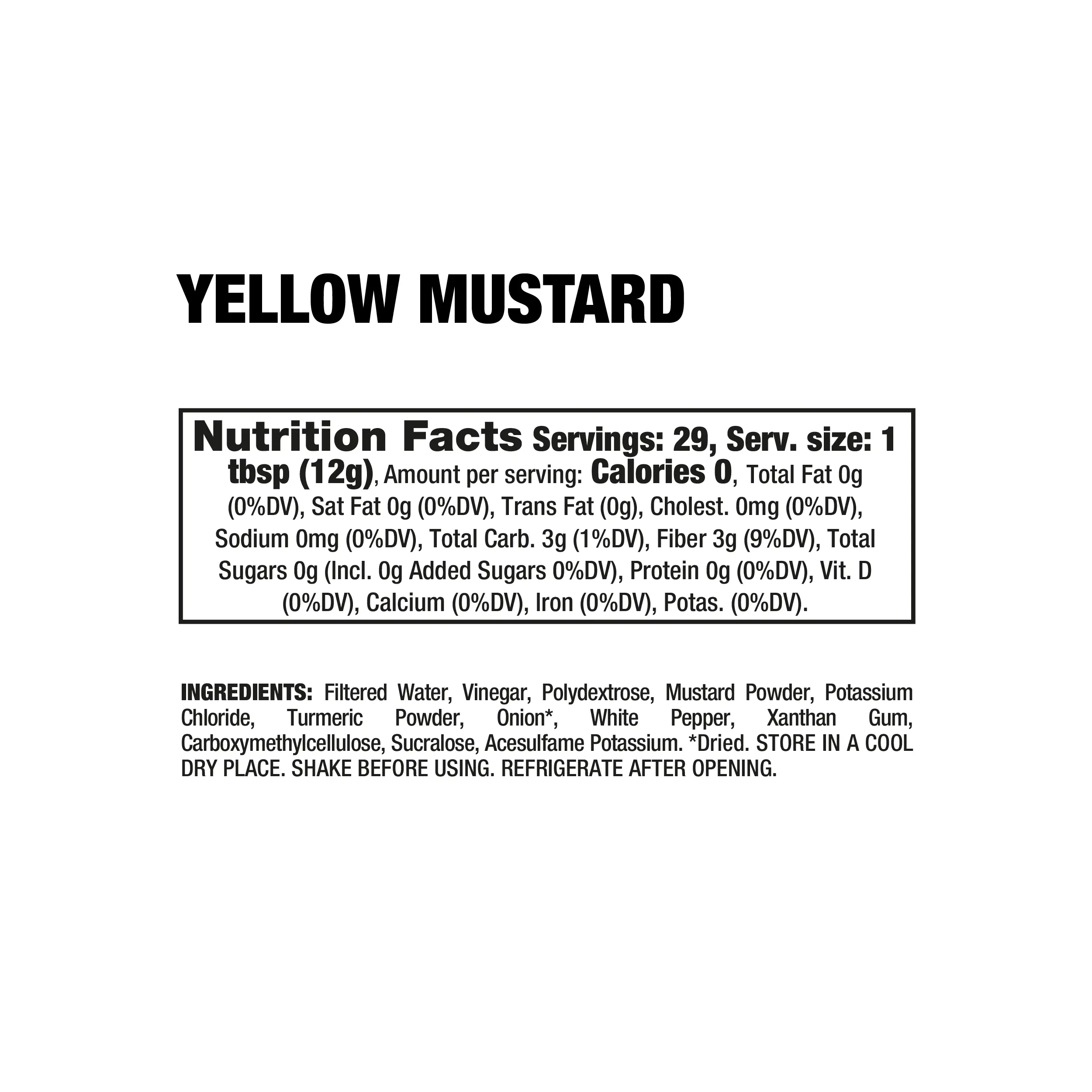 Meet your new flavor-first staple: a classic yellow mustard-style condiment and dip that delivers bold, tangy taste with ZERO SODIUM, ZERO CALORIES and ZERO SUGAR. Smooth and bright, it’s built for food lovers who want mustard flavor without compromise.