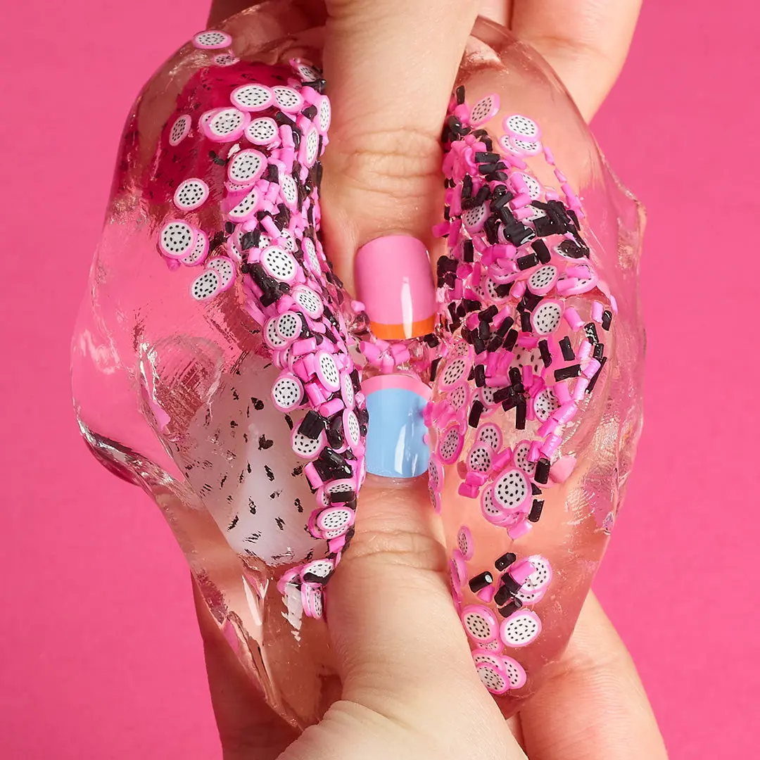 The scent was supposed to spell like dragon fruit smoothie but it just smelt like straight up shampoo..like not the good kind of shampoo. it was sorta sticky but i couldn't add activator because the slime was a little tough but still sticky, sorta like sticky putty. overall it's not bad.