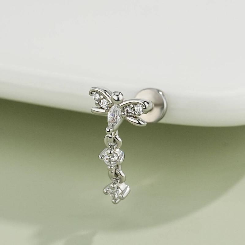 Oufer Dragonfly Clear CZ Dangle Top Cartilage Ear Piercing Stud 316L Stainless Steel