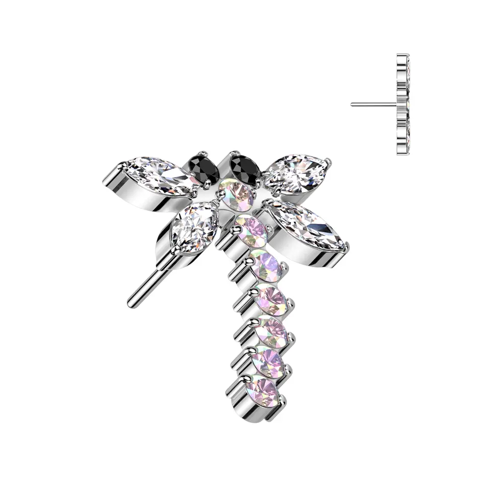 This versatile Dragonfly flat back earring is a must-have for body jewelry enthusiasts. Available in 20G, 18G, and 16G sizes, this earring can be used as a push pin labret, threadless flat back stud, tragus piercing, helix stud or cartilage stud.
