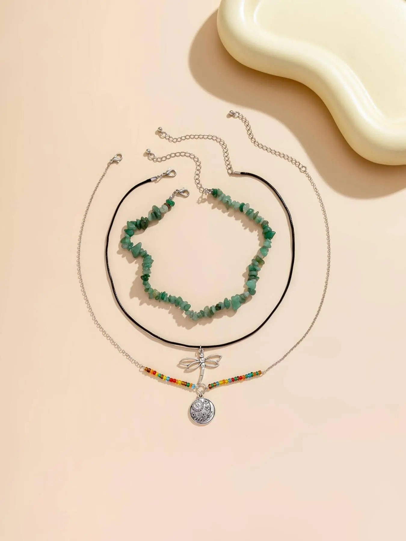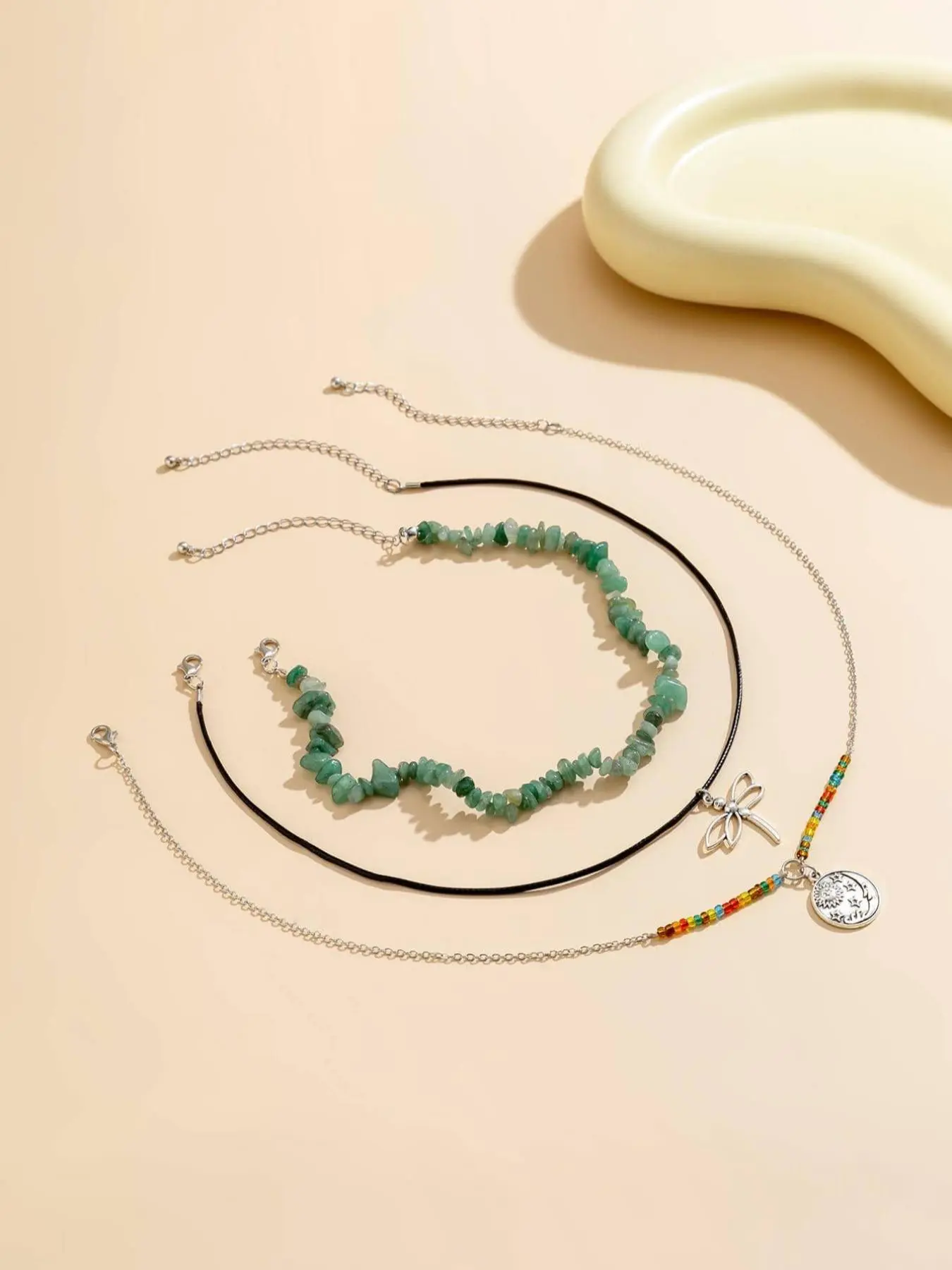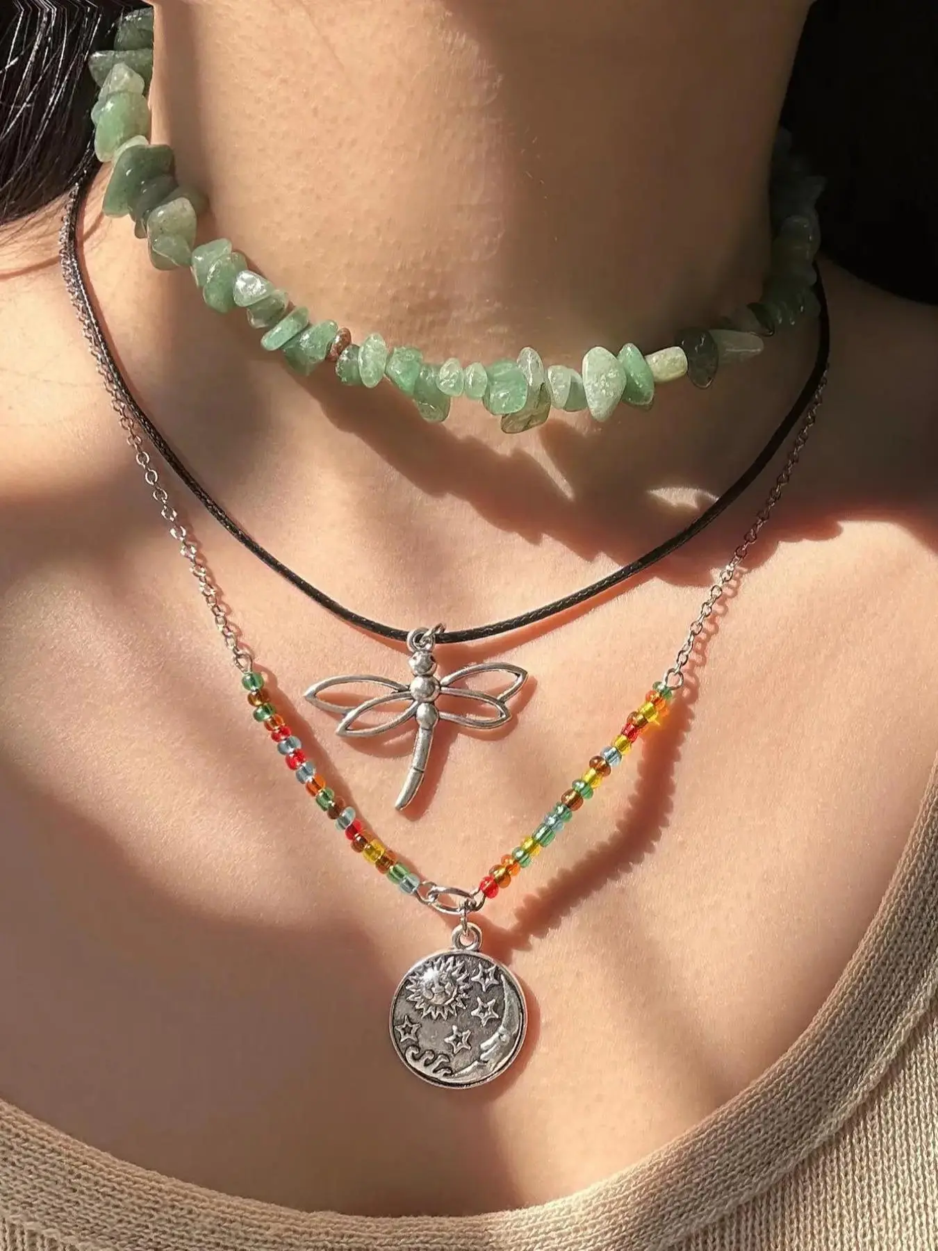 i got this mainly for the longer charm necklace, and it arrived broken. the choker and dragonfly pendant are cute though. i wasn’t expecting high quality given the price, but i was disappointed.
