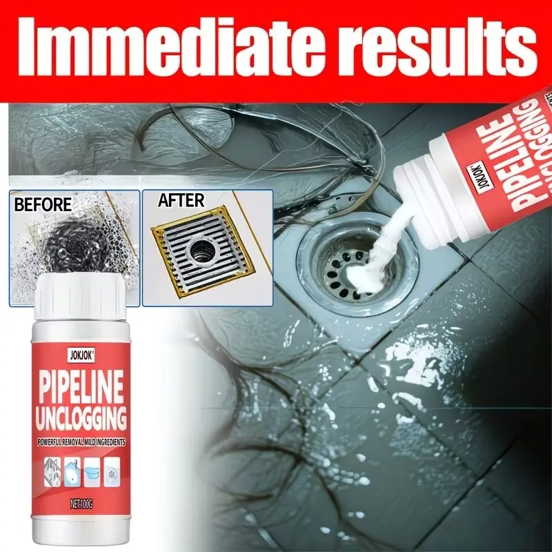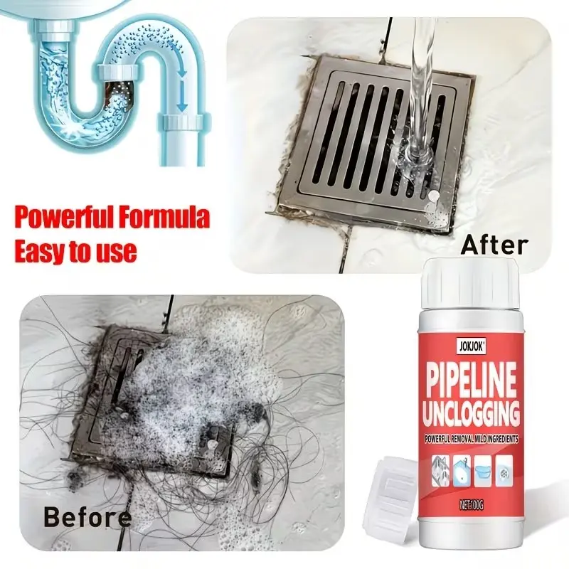 【Powerful Formula】: Features a strong cleaning powder that effectively clears stubborn clogs in various household pipes.