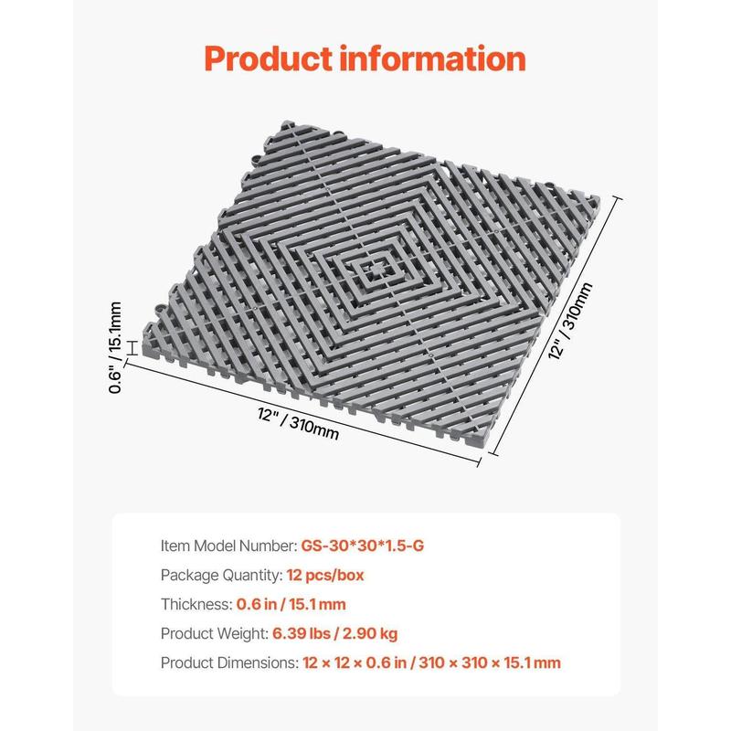 5. VEVOR Drainage Mat Modular Interlocking Cushion 12” x 12” Drainage Floor Mat