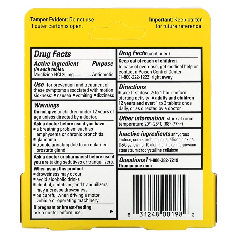 5. Dramamine Motion Sickness Relief, Less Drowsy, 25 mg, 8 Tablets