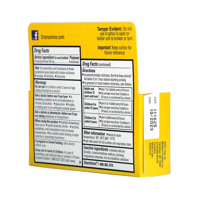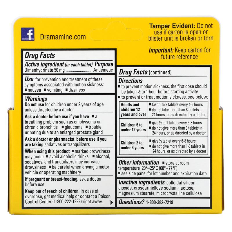 5. Dramamine Motion Sickness Relief, 50 mg, 36 Tablets