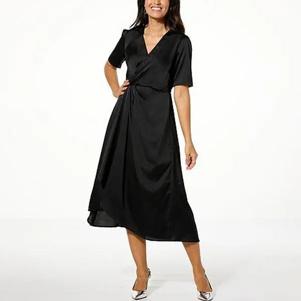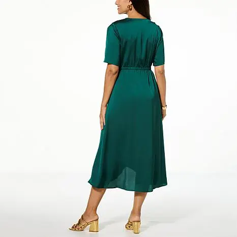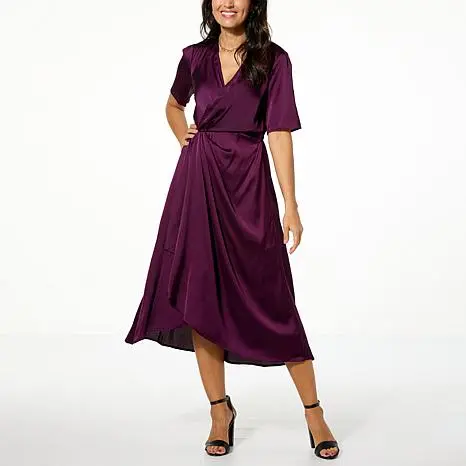 I cannot believe how beautiful & comfortable this satin dress from @HSN, Inc is!! #satindress #wrapdress #dresses #tiktokshopspringglowup