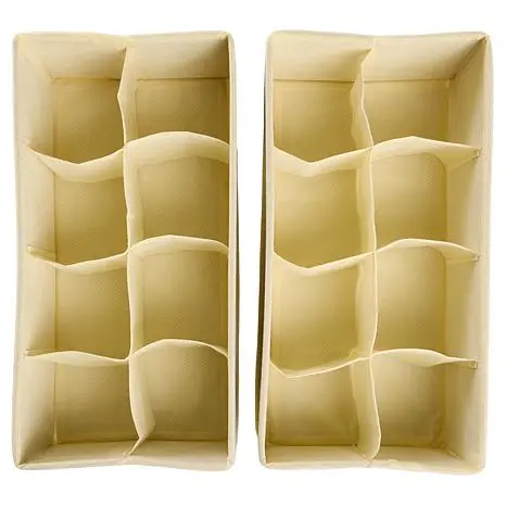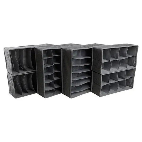 Improvements 6 piece Drawer Organizer Set Tired of the unorganized sock drawer, or maybe you can't find that second sock? This set of 6 drawer organizers have dividers designed to help you organize items within the drawer. Each organizer is 4" high and fits in any standard drawer. They can be useful for keeping small items like stationary, jewelry, hair accessories, socks, undergarments and makeup neatly arranged and easily accessible. What You Get 6 Storage compartments 6 Base inserts Instructions