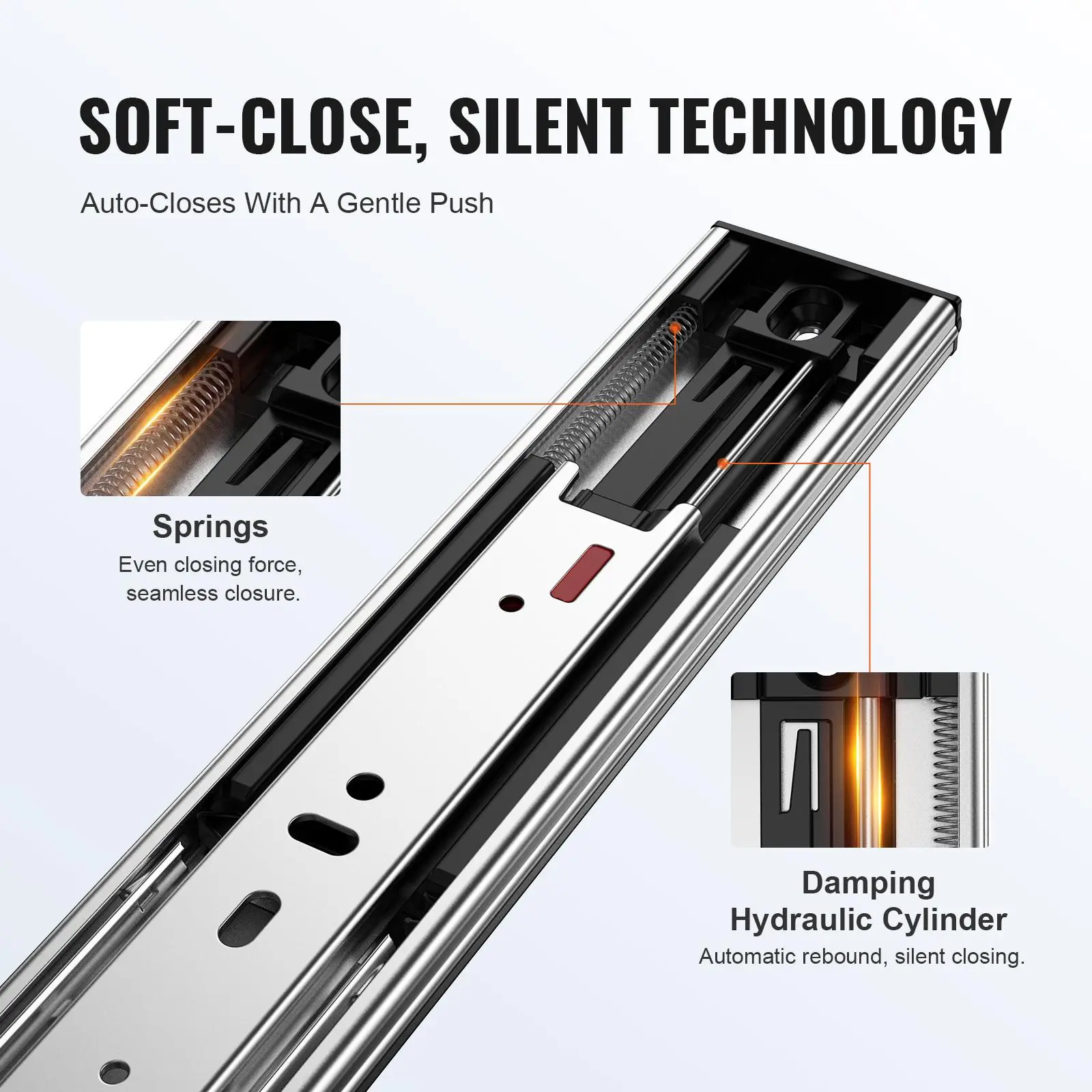5. VEVOR 6 Pairs of 20 Inch Drawer Slides Side Mount Rails, Heavy Duty Full Extension Steel Track, Soft-Close Noiseless Guide Glides Cabinet Kitchen Runners with Ball Bearing, 100 Lbs Load Capacity
