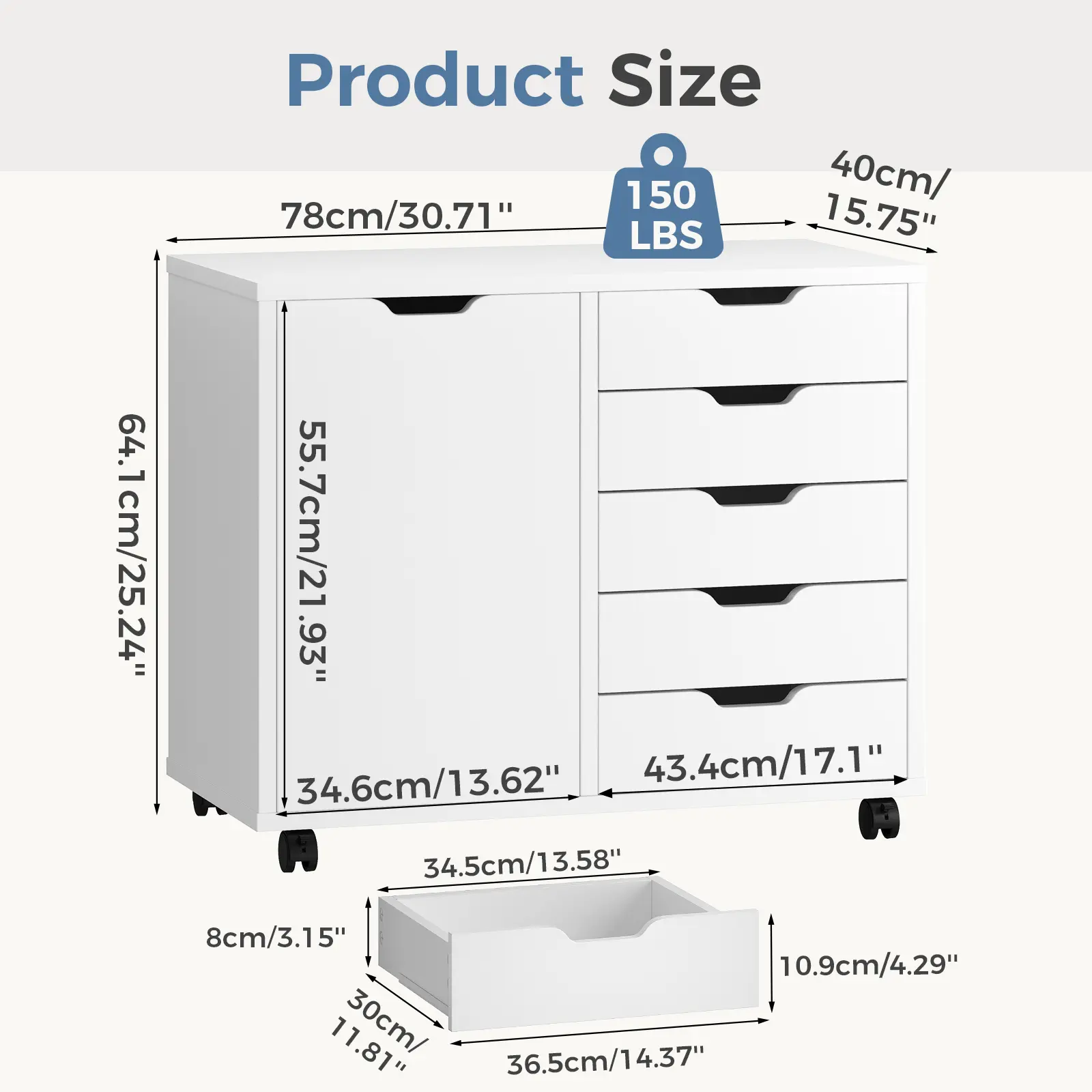 Made with wear-resistant particleboard, this file cabinet offers scratch-resistant and water-resistant properties. The top panel supports up to 100 lbs, while storage shelves and drawers each hold 15 lbs. This ensures reliable support for your belongings.