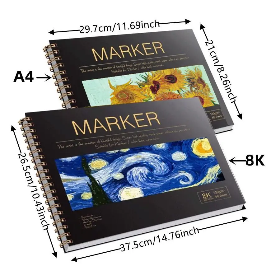 【60 Bleedproof Sheets】: Equipped with 60 sheets of 130gsm paper, designed to prevent marker ink from bleeding through, ideal for sketching and drawing.