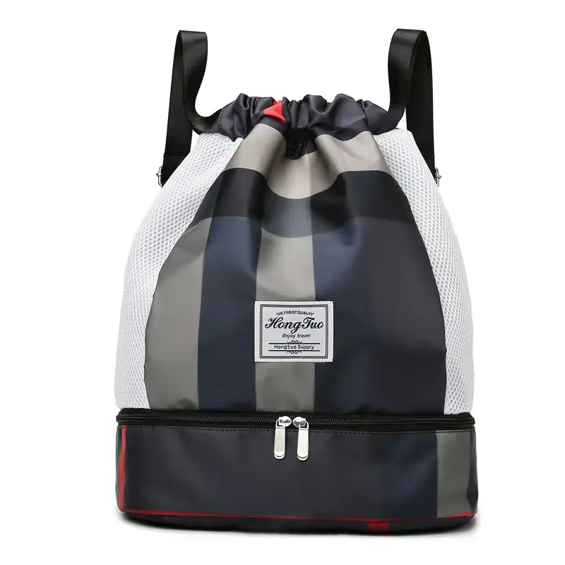 This drawstring backpack from HongTuo is designed for modern urban life and athletic activities. It combines practicality with a trendy aesthetic. Crafted from water-resistant Oxford fabric, it is lightweight and durable, weighing just 390g. Dimensions: 35cm × 19cm × 42cm. Ideal for gym, swimming, beach outings, or short trips.