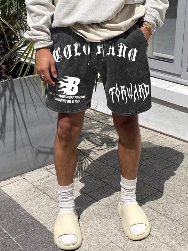 5. Unisex's Letter Print Drawstring Shorts, Street Fashion Casual Shorts for Daily Wear, Men's Bottoms for Summer, Athleisure Casual Stretch Shorts, Casual Relaxed Shorts