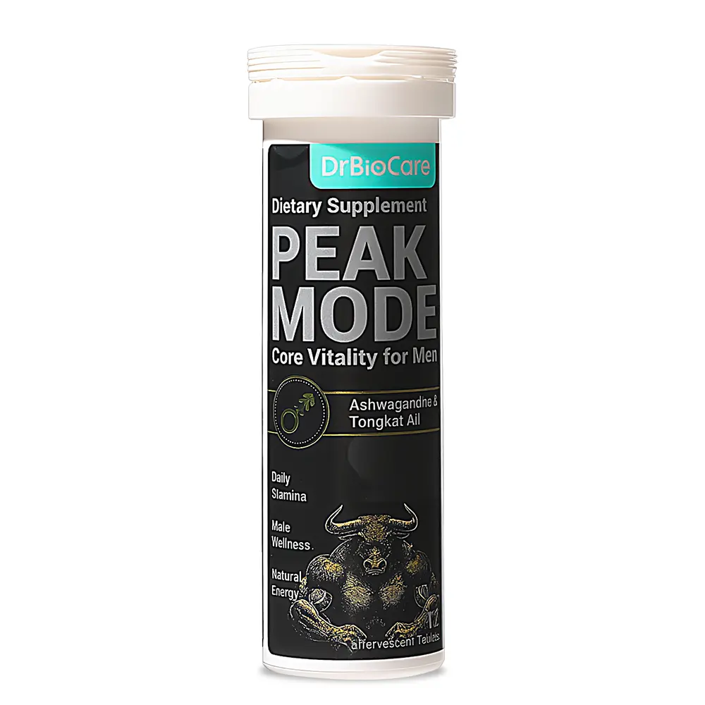 DrBioCare PEAK MODE: Ashwagandha and Tongkat Ali help relieve stress and maintain natural energy; maca root and tribulus terrestris help enhance stamina and promote recovery; L-arginine and shilajit promote blood circulation; zinc helps boost immunity and improve overall men's health.