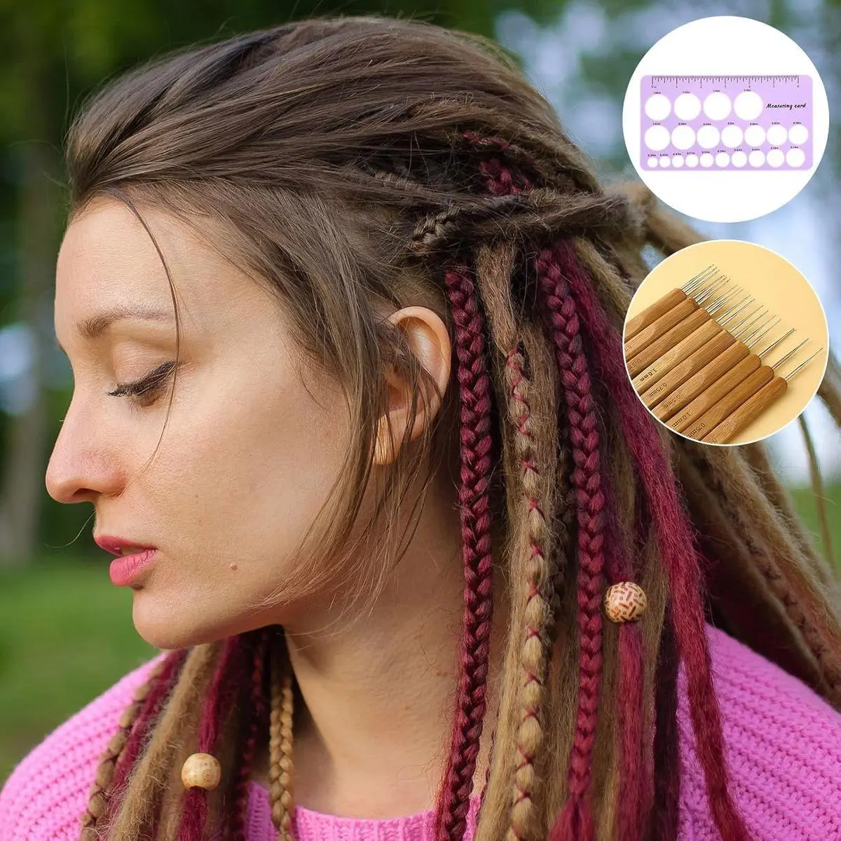 Premium Materials: these crochet hooks for locs are made of high-quality stainless steel, making them sturdy and durable. They feature a bamboo handle for a comfortable feel and ease of use. The loc measuring tool is made of premium silicone, soft and gentle on the skin, and won't damage the scalp