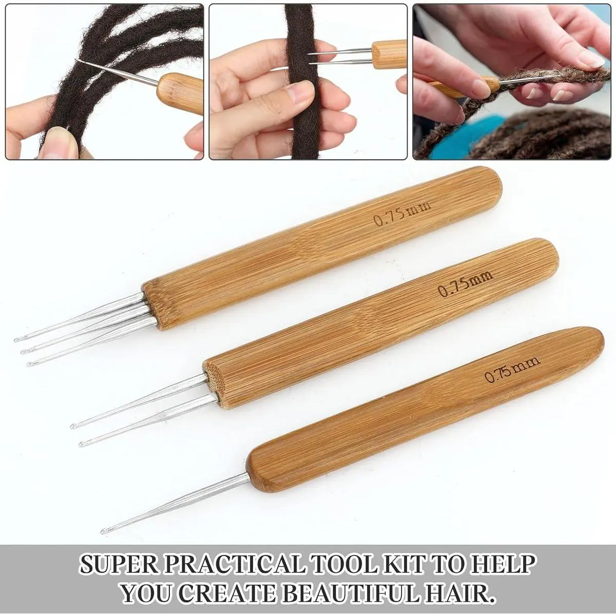Different Size: our crochet needles for locs come in different sizes, allowing you to choose the appropriate loc crochet needle based on the size and style of dreadlocks you want to braid. Crochet hooks for locs include three styles: Single Hook, Double Hook, and Three Hook, each available in 0.5mm, 0.75mm, and 1.0mm sizes