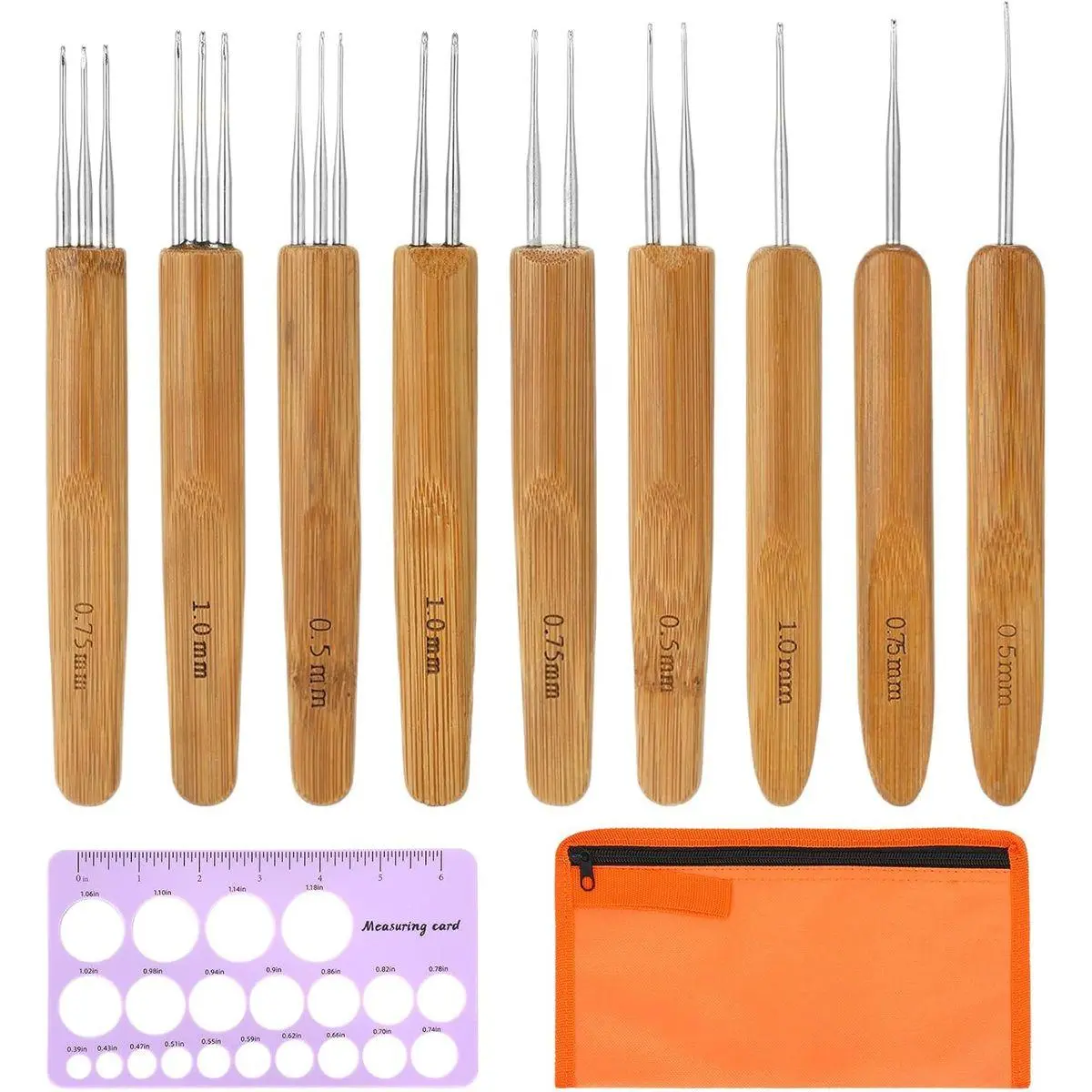 Package includes: you will receive a 11-pcs dreadlock crochet hook set, including 9 x loc crochet needles with bamboo handles, 1 loc measuring tool, and 1 storage bag. This complete and luxurious loc tool set allows you to easily create beautiful dreadlocks, and the included storage bag makes it easy to store your tools for easy access