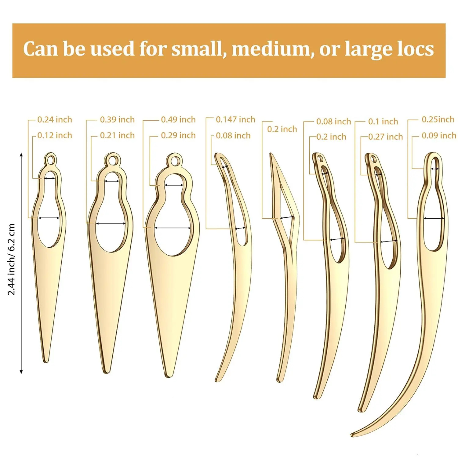 8 Various sizes: :these hair locking tools are designed in 8 different sizes which are shown in pictures, can be applied for small, medium, or large dreads, never worry about finding the right tool for your hair