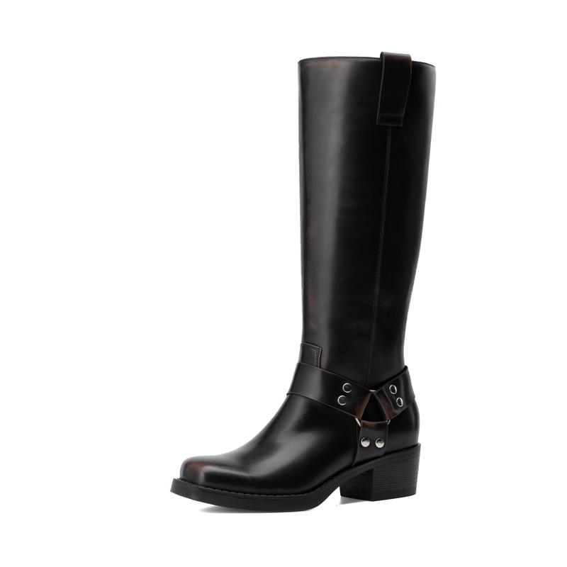 ·Edgy Retro Vibes: Turn heads with these bold moto boots - a perfect blend of punk attitude and cowgirl charm. Featuring a vintage upper, metallic buckles, and a chunky sole, these boots deliver a full-on statement look.
