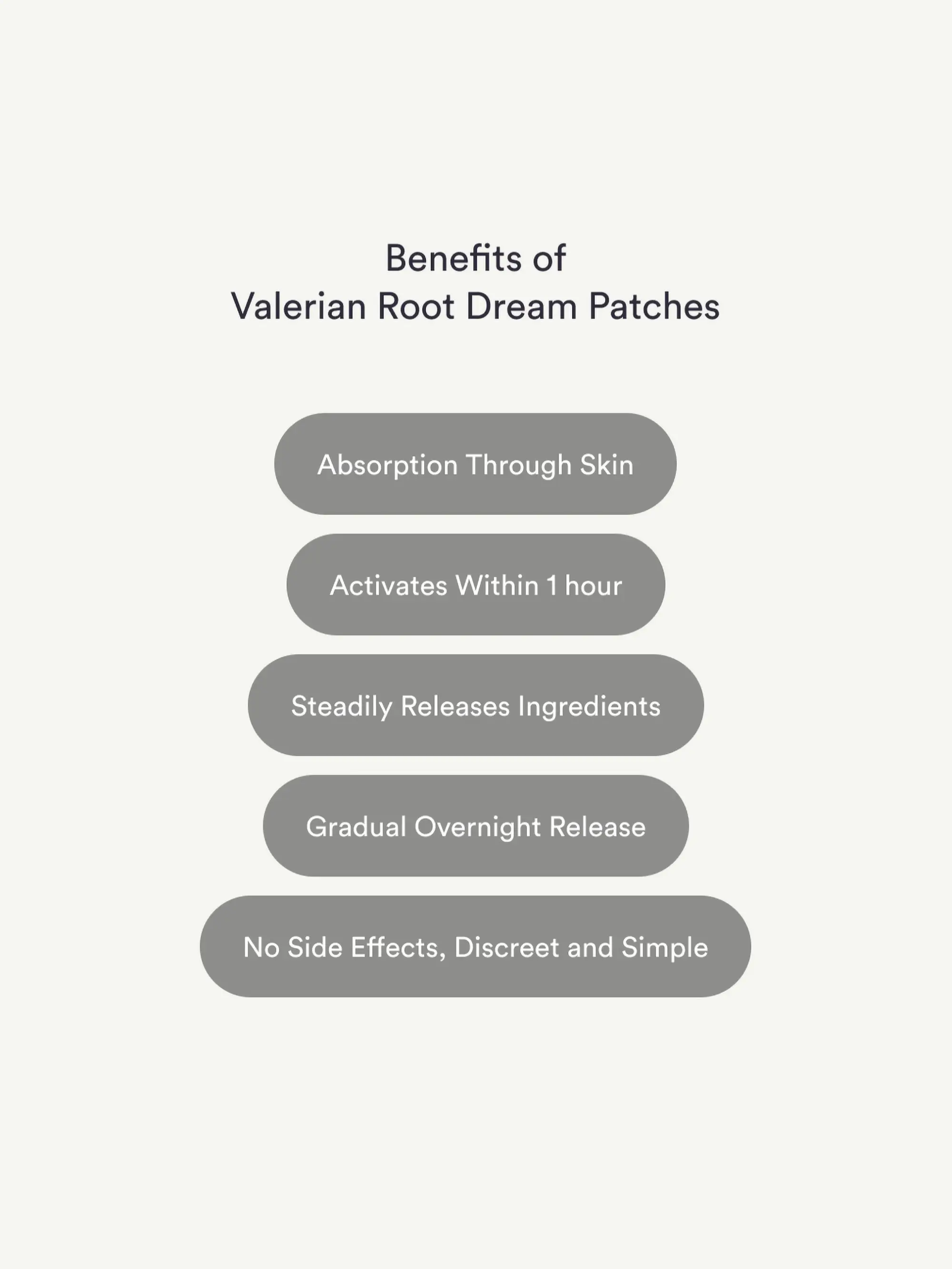 Our Valerian Root Dream Patches are formulated to support your evening routine with a blend of key ingredients: