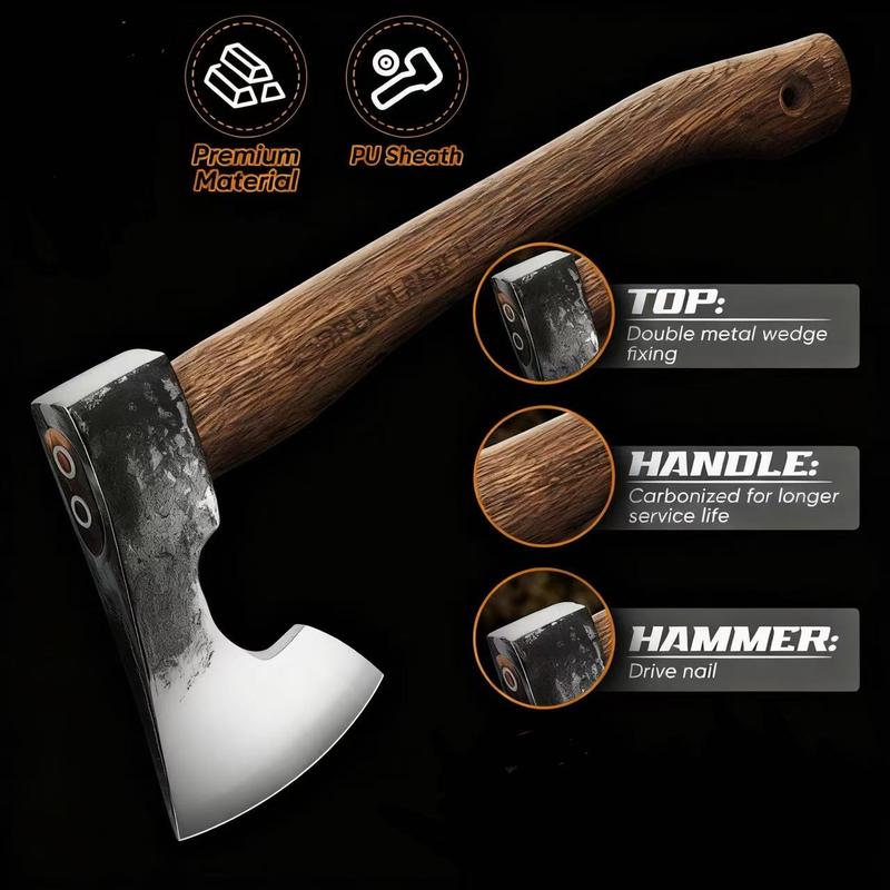 【Unique Clipping Steel Craft】The wood splitting gardening hatchet's blade features harder steel at its core, with soft steel layered on both sides. The flexible soft steel on either side wraps around the inner high-carbon steel, preventing the central steel from breaking even if bent. This design significantly enhances the sharpness and durability of the gardening hatchet. 【Premium Carbonized Handle】The gardening hatchet handle undergoes high-temperature heating treatment, ensuring long-lasting use with enhanced corrosion and weather resistance. It also boasts good fire-retardant performance, which can effectively slow the spread of fire. Additionally, it offers high stability with minimal contraction and expansion, reducing deformation and cracking caused by changes in humidity and temperature. 【Gardening Axe with Special Sheath】This wood-cutting gardening axe comes with a unique leather sheath. The sheath not only keeps the holster securely in place during carrying but also protects the gardening axe blade. It allows for easy portability of the gardening hatchet, facilitating your enjoyment of outdoor gardening activities. 【Wide Range of Applications】Dream Reach splitting gardening hatchet meets various gardening and outdoor needs, including splitting firewood for outdoor heating, conducting woodworking projects, and processing small pieces of wood for gardening purposes. Its exquisite gift box design makes it a valuable addition to your collection of gardening tools or a delightful gift for friends who enjoy gardening and outdoor leisure activities. 【Quality Commitment】Dream Reach is an established company, and every sharp hand-held gardening hatchet undergoes strict inspection before delivery. Our goal is to provide customers with a satisfying shopping experience. If you encounter any issues with the gardening hatchet, please feel free to contact our Customer Service.