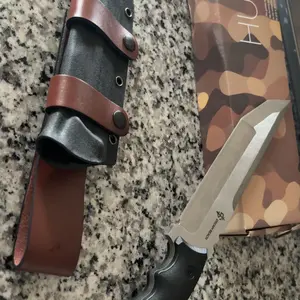 American style tanto blade with wicked grinds! Full tang and nice G10 scales. Great kydex sheath. Nice price point!