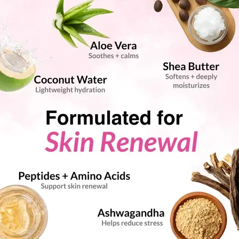 | Ingredients | Water,Caprylic/Capric Triglyceride,Glycerin,Cetyl Alcohol,Dicaprylyl Ether,Coco-Caprylate/Caprate,Polyglyceryl-6 Distearate,Butyrospermum Parkii (SheaButter),Microcrystalline Cellulose,Cellulose Gum,Pentylene Glycol,Phenoxyethanol,Ethylhexylglycerin,Ethylhexyl polyhydroxystearate,Fragrance,AmmoniumAcryloyldimethyltaurate/VP Copolymer,Xanthan Gum,Isosorbide Dicaprylate,Citric Acid,Aloe Barbadensis Leaf Extract,Tocopheryl Acetate,RetinylPalmitate,Tetrahexyldecyl Ascorbate,Panthenol,Niacinamide,Butylene Glycol,Cocos Nucifera (Coconut) Water,Withania Somnifera Root Extract,Laureth-3,Hydroxyethylcellulose,AcetylDipeptide-1 Cetyl Ester,Sodium Cocoyl Amino Acids,Sarcosine,Potassium Aspartate,Magnesium Aspartate. |