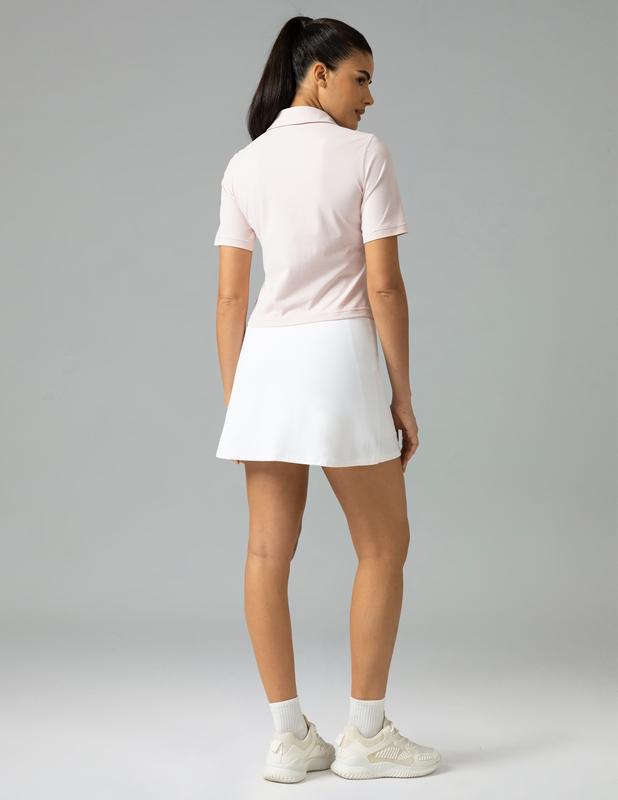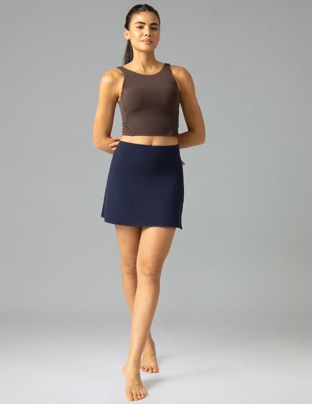The built-in shorts provide safety and comfort, ensuring you stay secure during intense activities. Side pockets offer convenient storage for small essentials. This skirt combines elegance with practicality, blending seamlessly into your athletic wardrobe. Experience the perfect blend of style and functionality with this 16.5'' length skort.