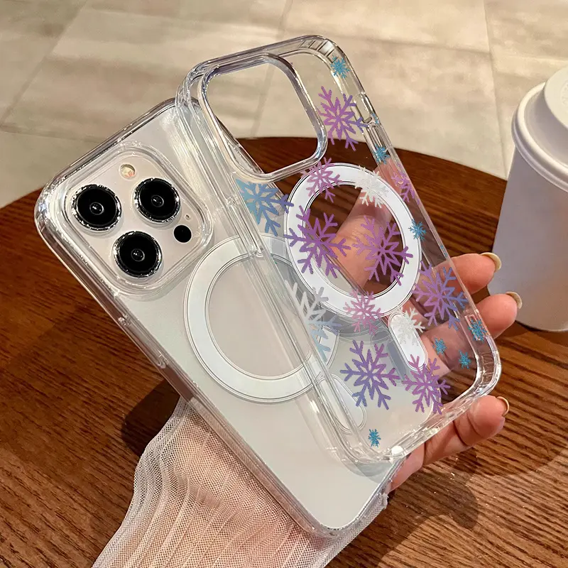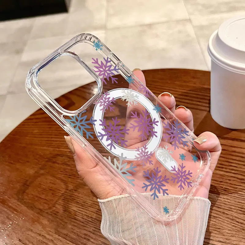 Dreamy Gradient Snowflakes for Winter Solstice MagSafe Case for iPhone 17 Pro Max Air 16 16e 15 14 Plus 13 12 11 X XS Pattern Magnetic Acrylic Back TPU Edges Shockproof Ultra Thin Mobile Phone Cover Valentine's Day Gift 2D printing