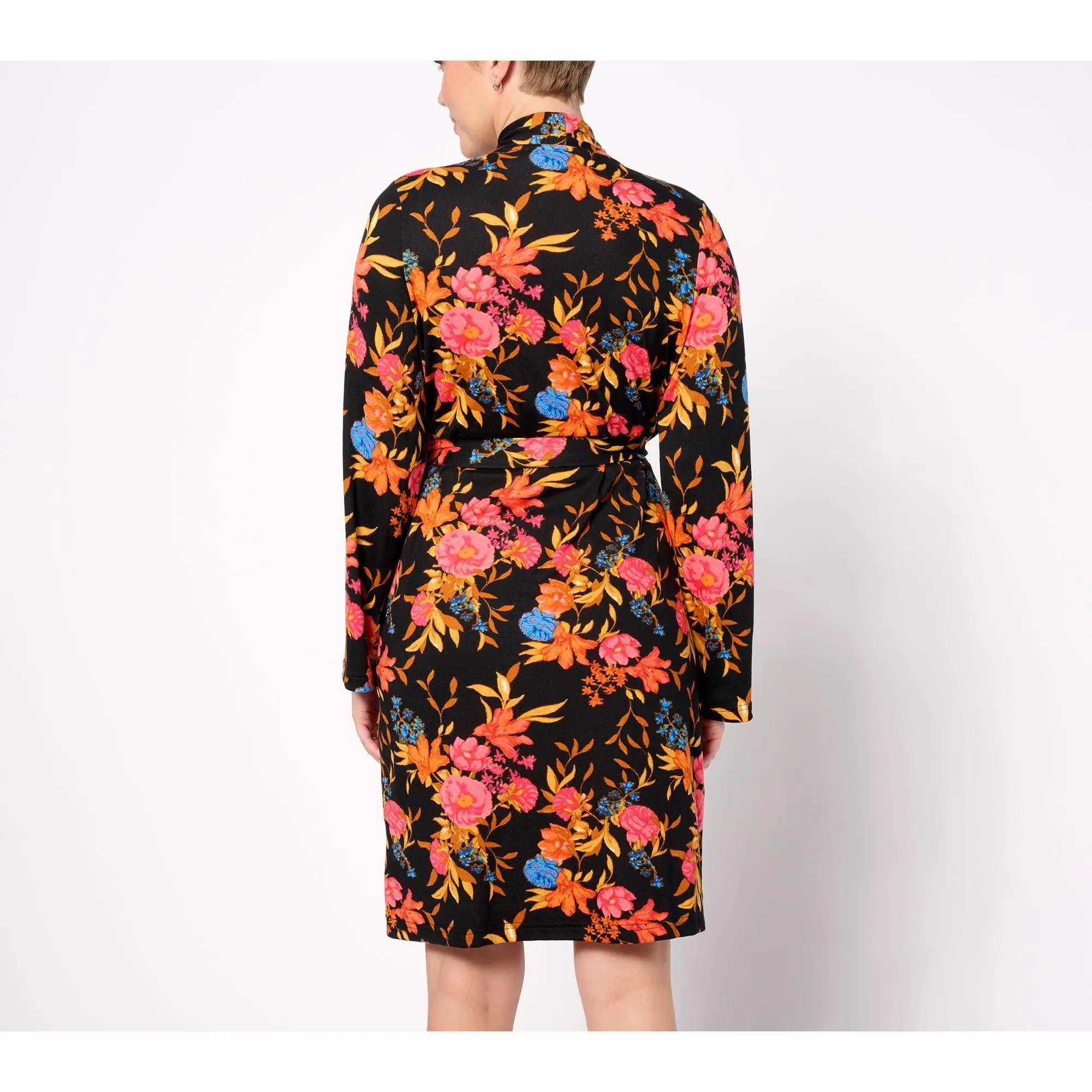 QVC Bumblebella by Jill Martin Women's Printed Jersey Spa Robe - Belted Womenswear Loungewear Gown