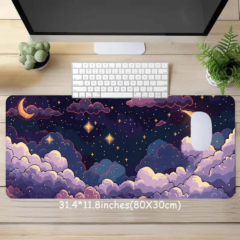 5. Dreamy Purple Starry Sky Cloud Mosaic Large Gaming Mouse Pad,aesthetic Desktop Drotection Pad,washable Rubber Pad Non-slip Lock Edge Multi-size Mouse Pad Suitable for Home Office,good Gift for Family and Friends, Desktop Accessory