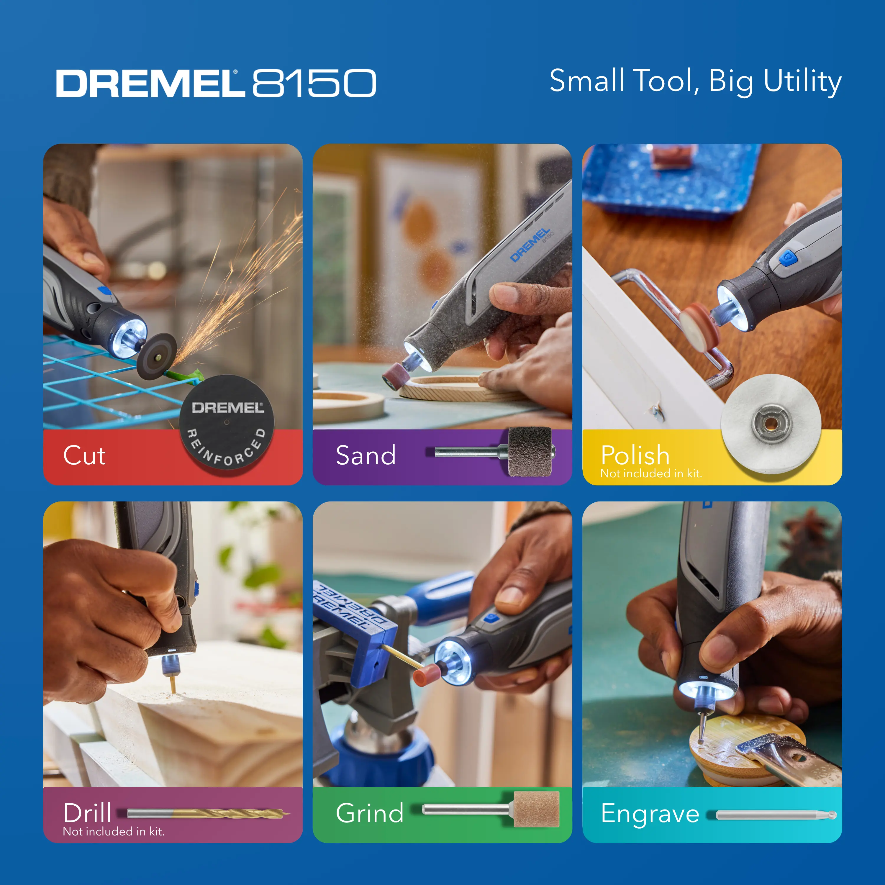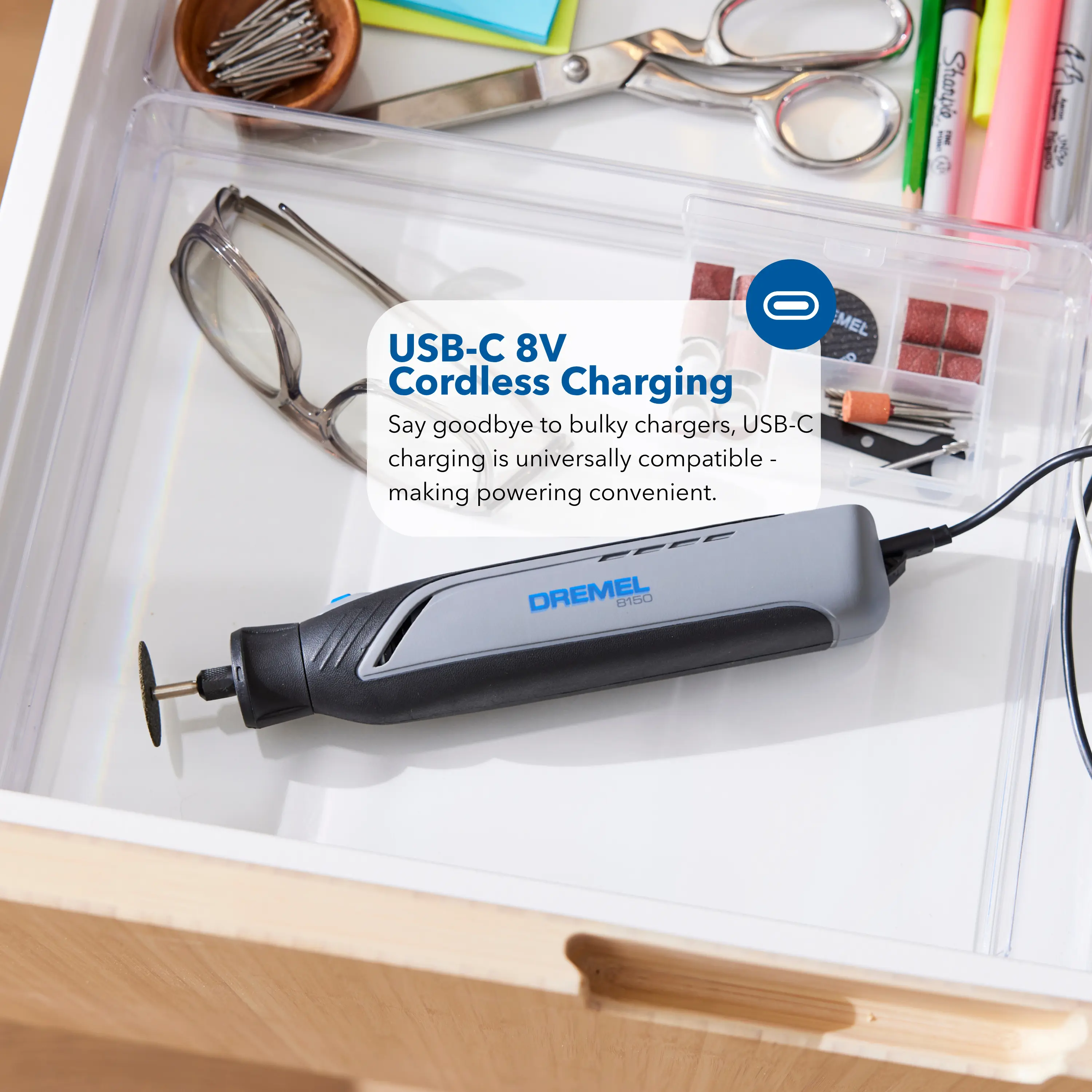 The Dremel 8150 is the ultimate compact brushless 8V rotary tool for everyday tasks. Combining power, precision, and portability, it’s the ideal tool for both creative and functional home improvement projects. Built to handle a wide range of tasks, from engraving and cutting to sanding and sharpening, the 8150 delivers unmatched flexibility and control while saving space. It’s your go-to for tackling tasks with ease.