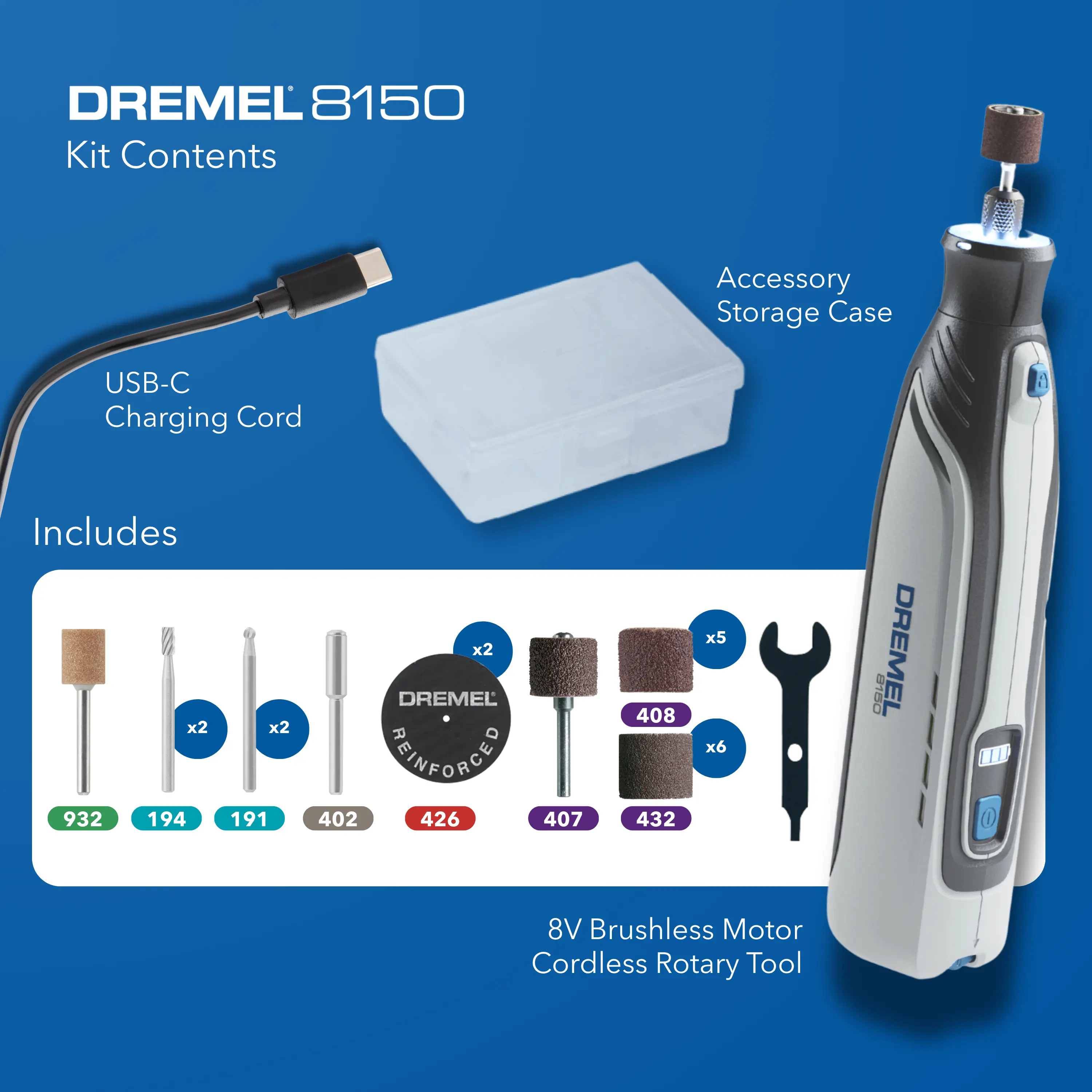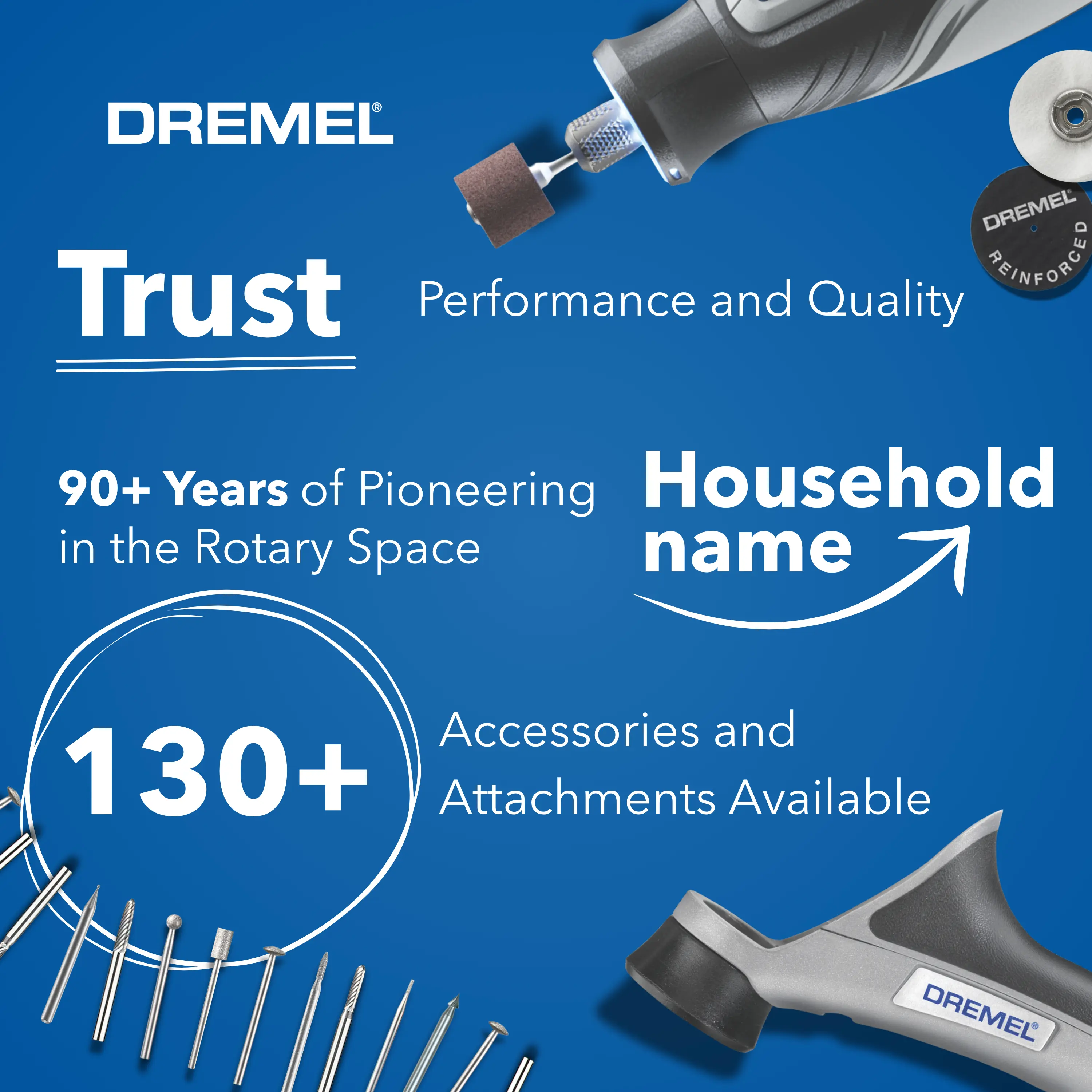 FULLY COMPATIBLE WITH ALL DREMEL ROTARY TOOL ACCESSORIES AND ATTACHMENTS