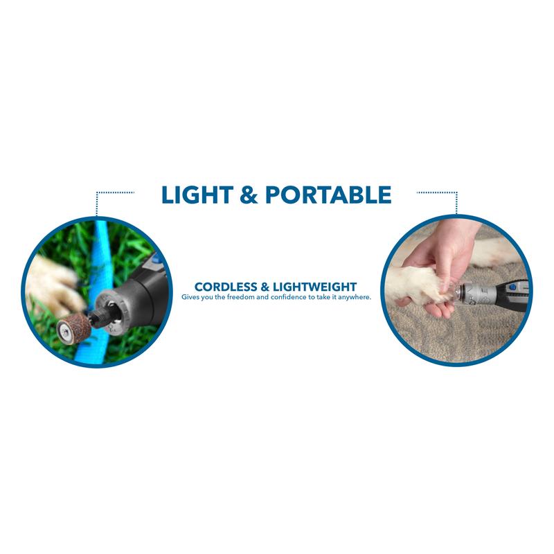 With multiple accessory options, a rechargeable 4V lithium-ion battery, and variable speed operation, precise control is at your fingertips. Whether a beginner or experienced with your pet's nails, the Dremel 7760-PGKD will help overcome any anxiety or hesitation to provide your desired results, every time.