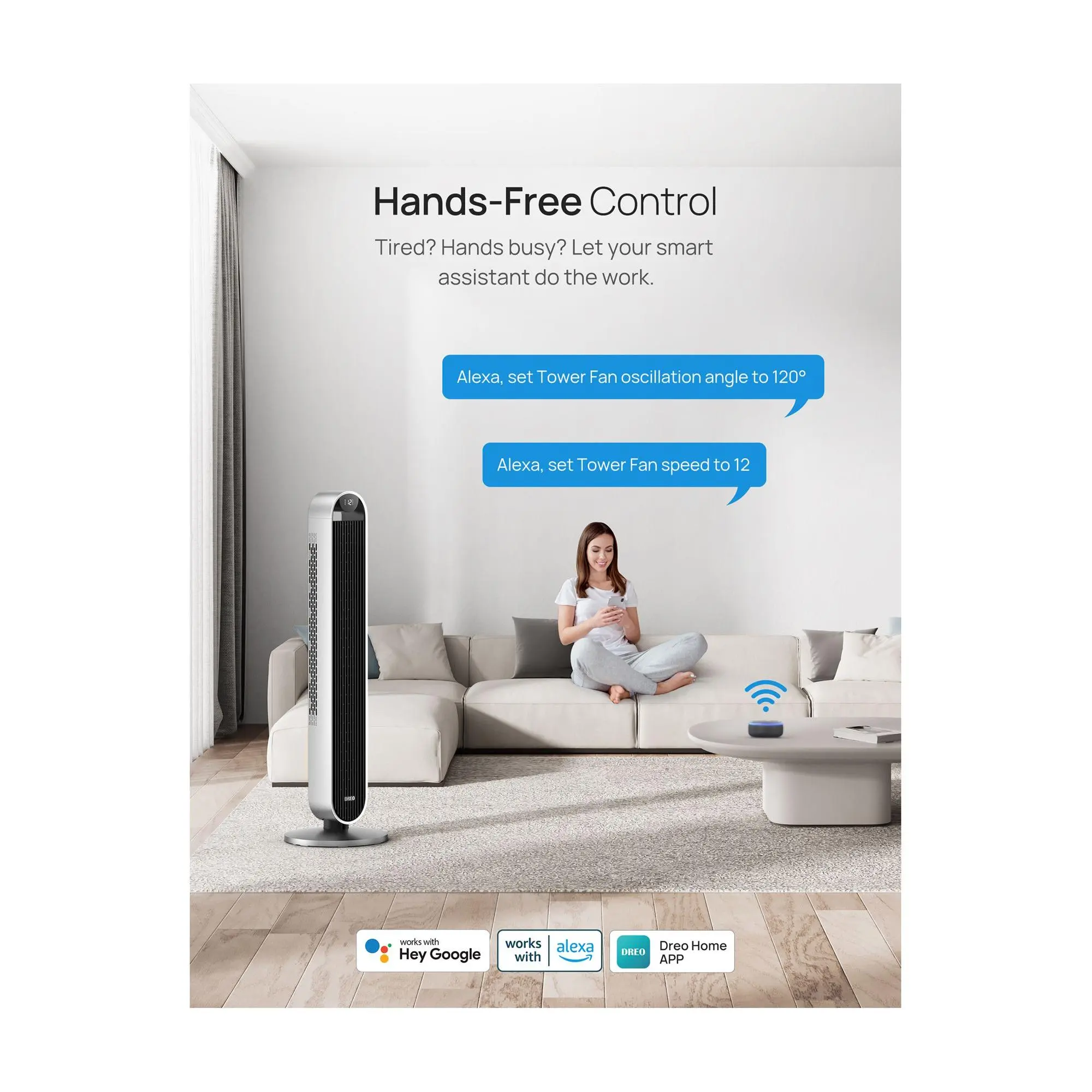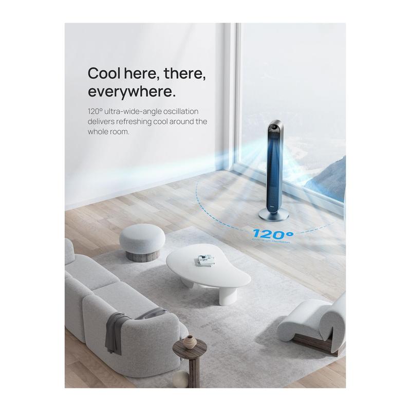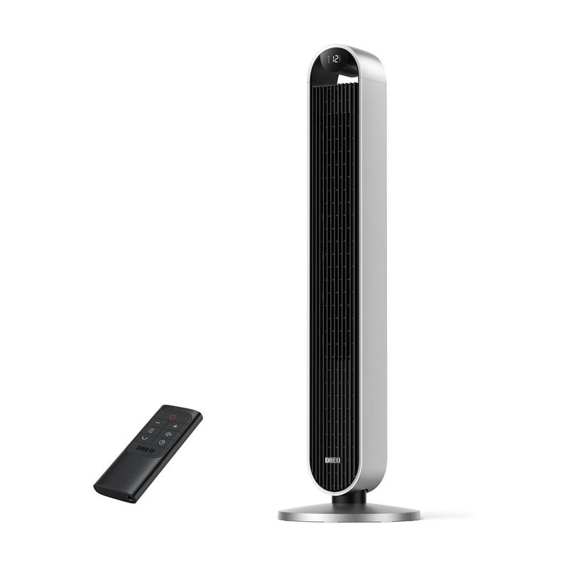 Experience a new level of comfort with the Dreo Tower Fan, featuring a 120-degree oscillating design and a quiet 25dB DC motor. With 12 speeds, four modes, and a 12-hour timer, this bladeless standing fan offers customizable cooling for your home. From Dreo.