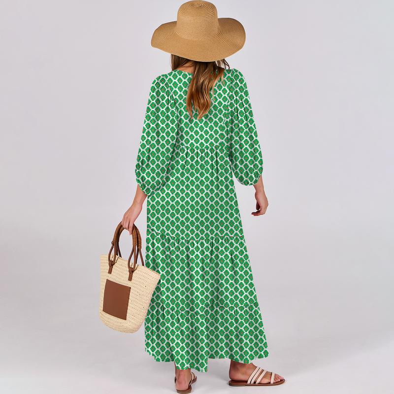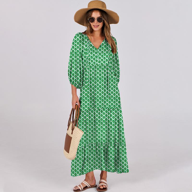 ·Style: Long boho dress with timeless and dainty printed easy to match with earrings,high Heel, sandals for your laid-back and stunning look