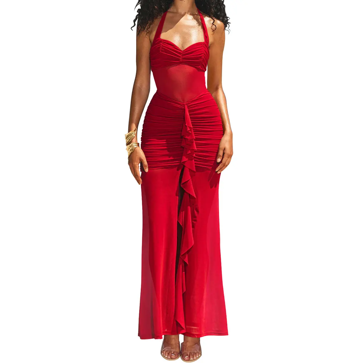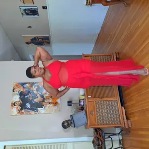 Es hermoso lo pedí talla L y me quedó perfecto, mido 5 pies y 2 pulgadas peso 179 libras. Lo puedes usar con sandalias elegantes o zapatos de tacones como deseen. Lo recomiendo 100%